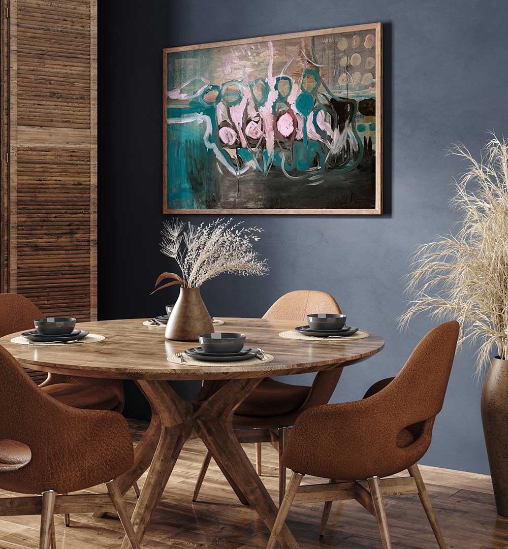 - Forest-inspired abstraction that pairs with modern, minimalist, and rustic interiors