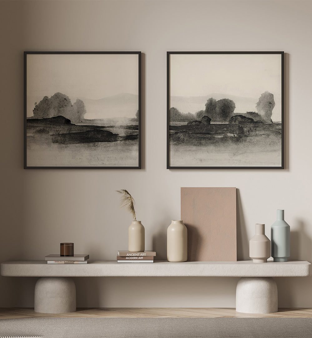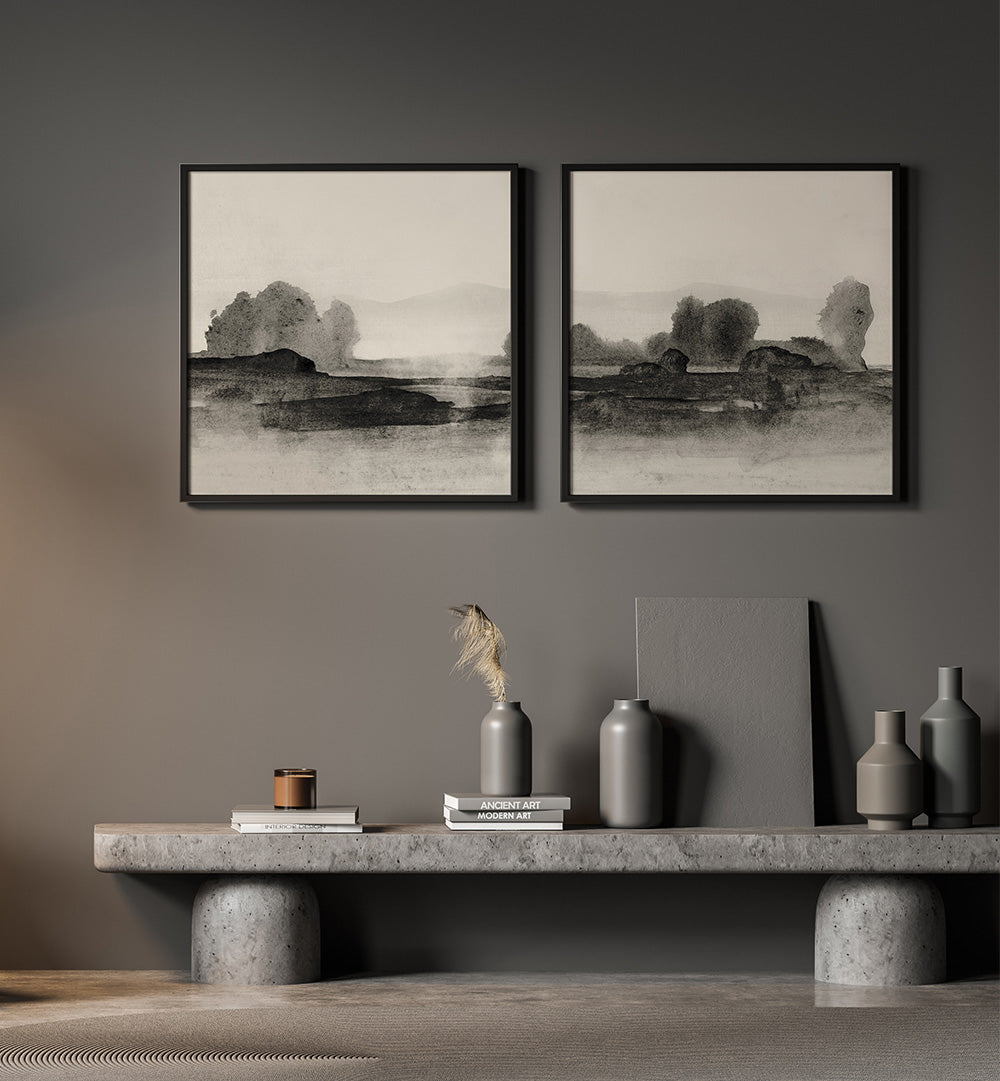 Don’t miss the opportunity to enhance your decor with the timeless beauty of the BLACK CLOUDS SET, SET OF 2 PAINTINGS. Order yours today and let nature's raw elegance transform your space!