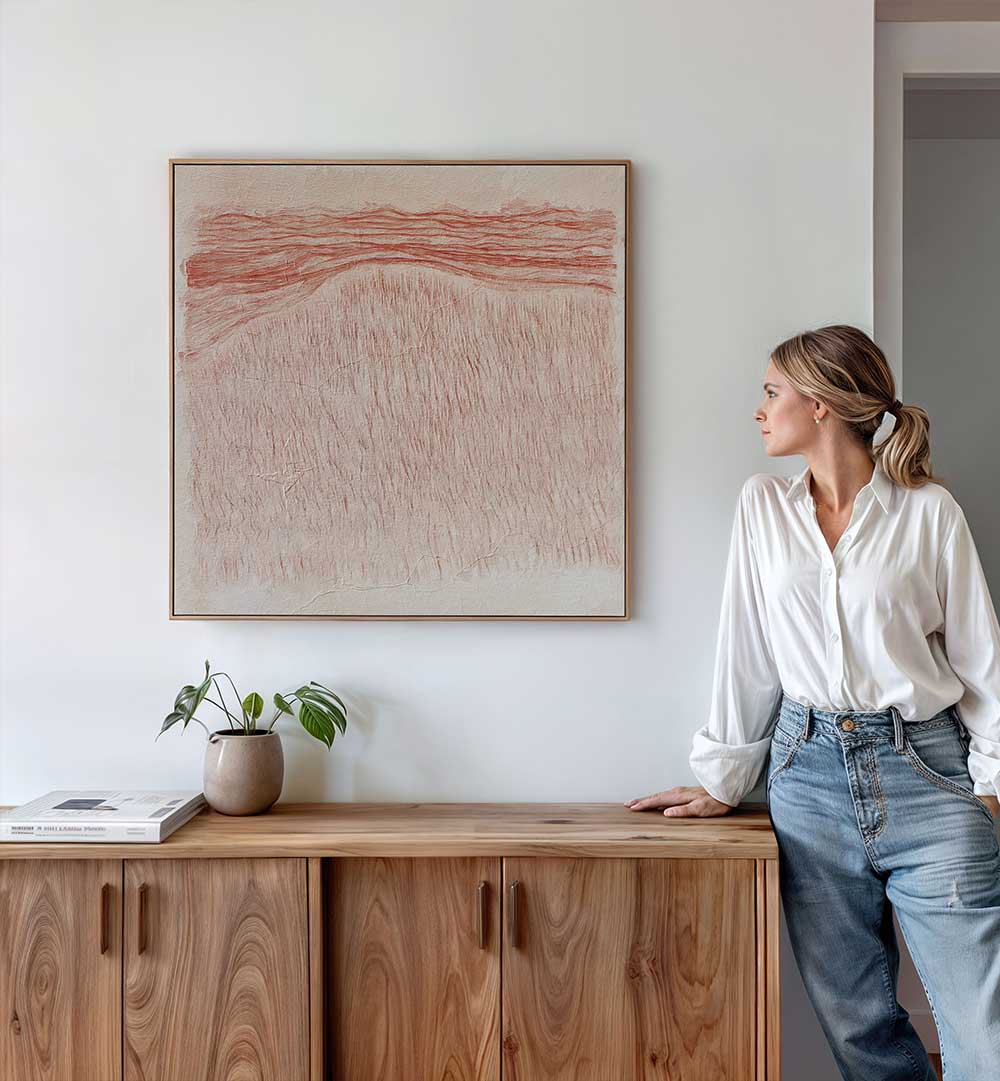 - Pair with neutral furnishings and natural textures to highlight the painting's subtleties.