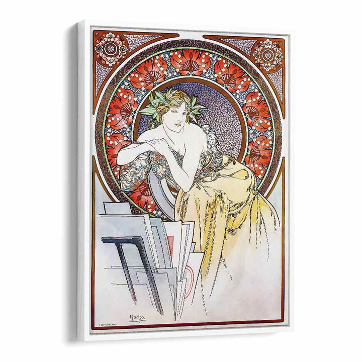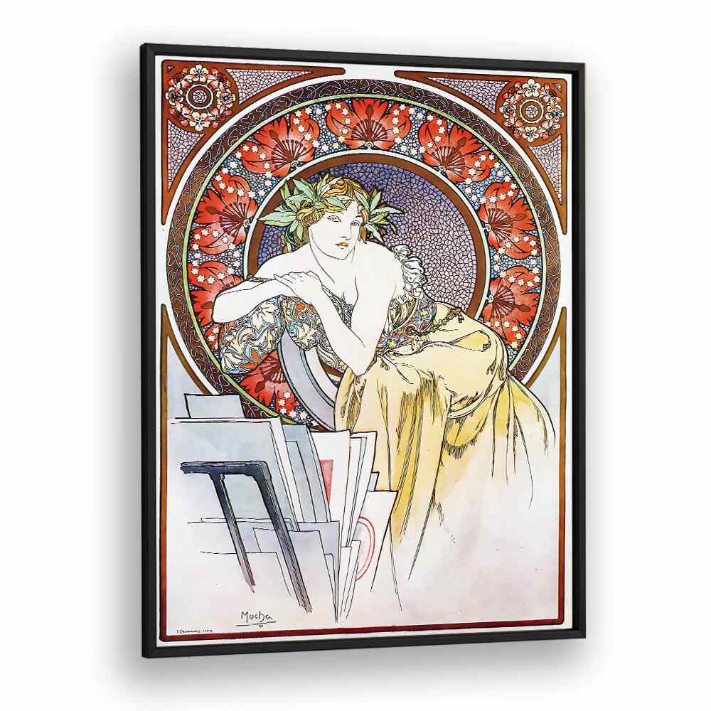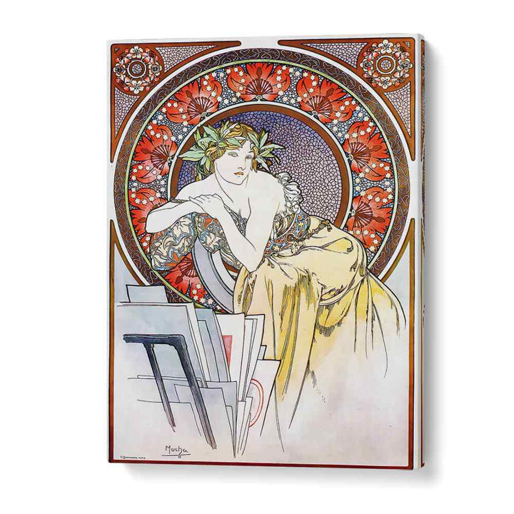 Step into the enchanting world of Alphonse Mucha with our exquisite art print of "Femme au Carton a Dessins - Girl with Easel." This stunning piece, originally created in 1898, captures the essence of vintage artistry and is now available on premium museum-grade canvas and fine art media.