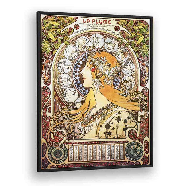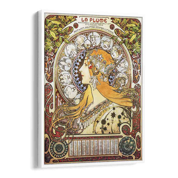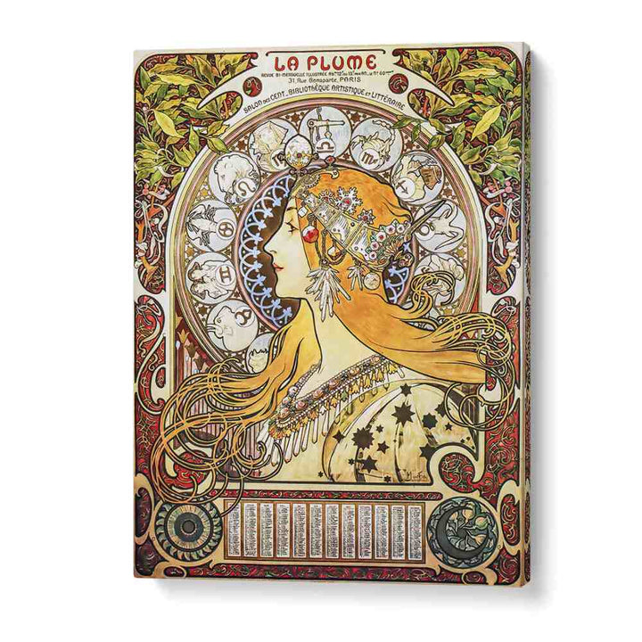 Introducing LA PLUME - ZODIAC - 1896 by the renowned artist Alphonse Mucha. This exquisite vintage painting is now available on premium museum-grade canvas and fine art media, perfect for elevating your space.