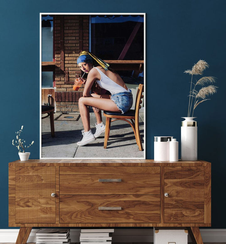 Introducing the Girl with Pearl Earring Chillout Mood, Altered Art Print – a stunning reinterpretation of Johannes Vermeer’s iconic masterpiece that blends classical elegance with contemporary flair. This art print is not just a reproduction; it’s a captivating fusion of creativity and emotion, perfect for modern interiors.