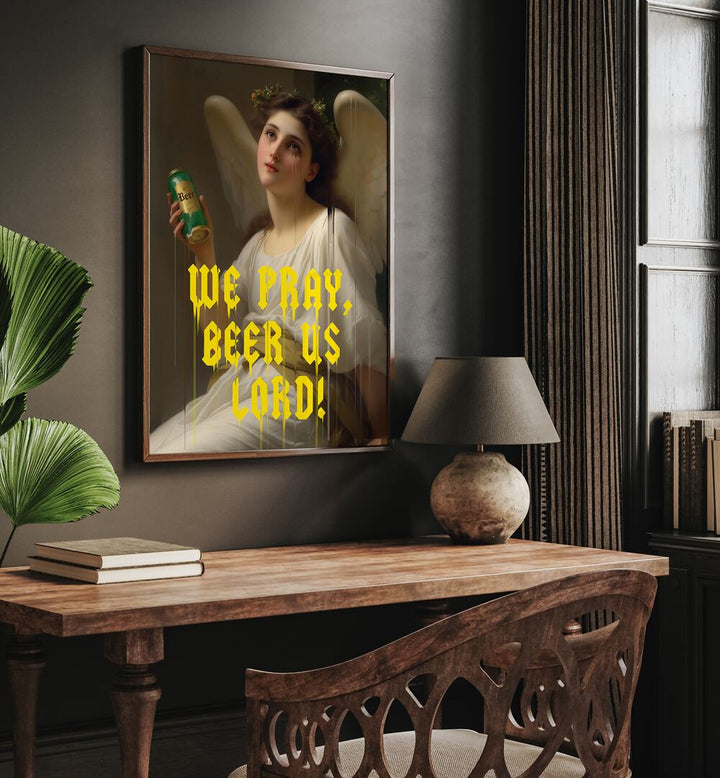 Introducing the delightful “We Pray Beer Us Lord” altered art print by Dikhotomy, where faith meets a touch of humor! This stunning piece is designed for those who appreciate both spirituality and the jovial spirit of beer culture, making it a unique addition to any home or social space.