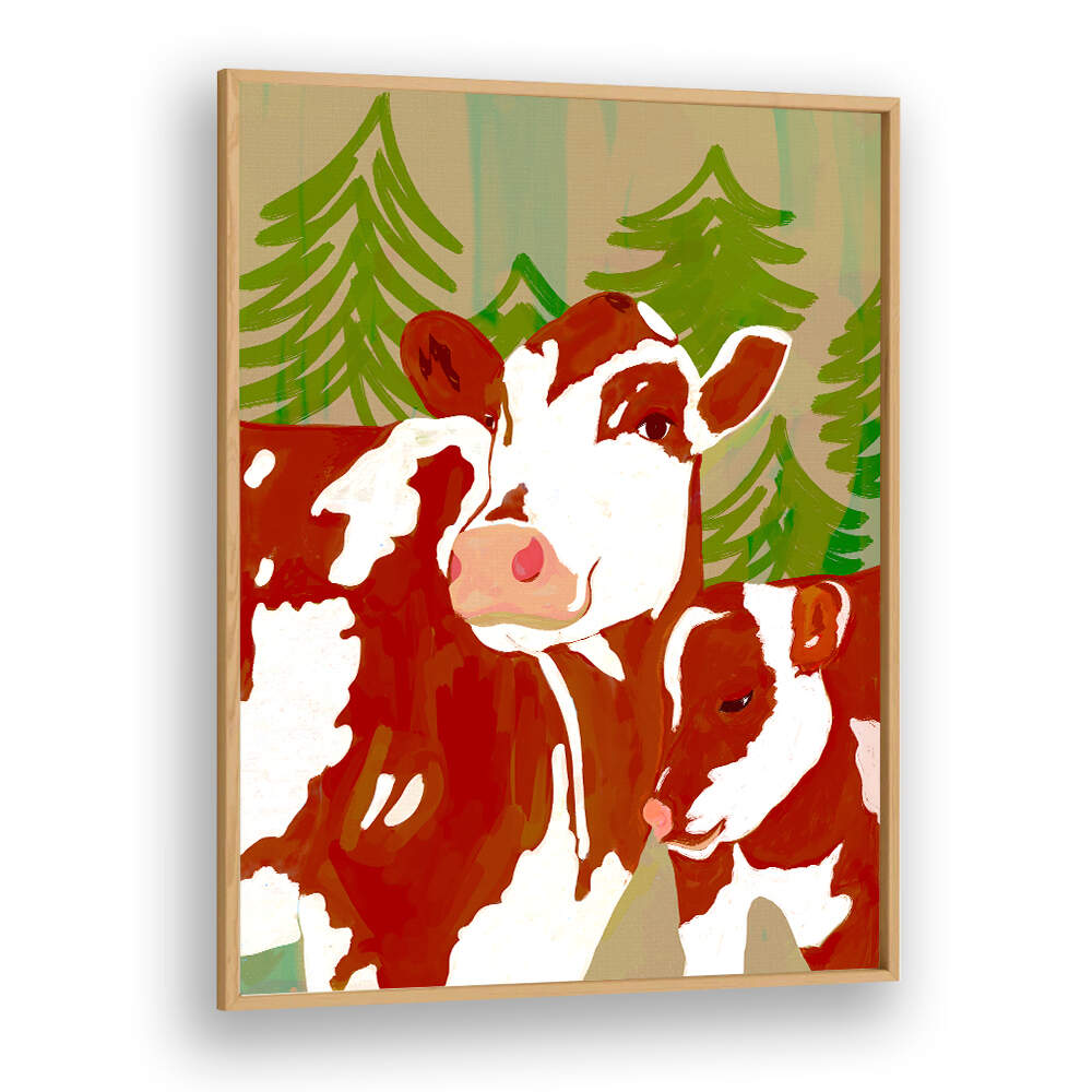 COW & CALF WOODLAND EMBRACE is a captivating animal painting that invites you into a quiet moment of nature. This tender scene captures a mother cow and her calf nestled beneath whispered trees, conveying warmth, trust, and the beauty of rural life.