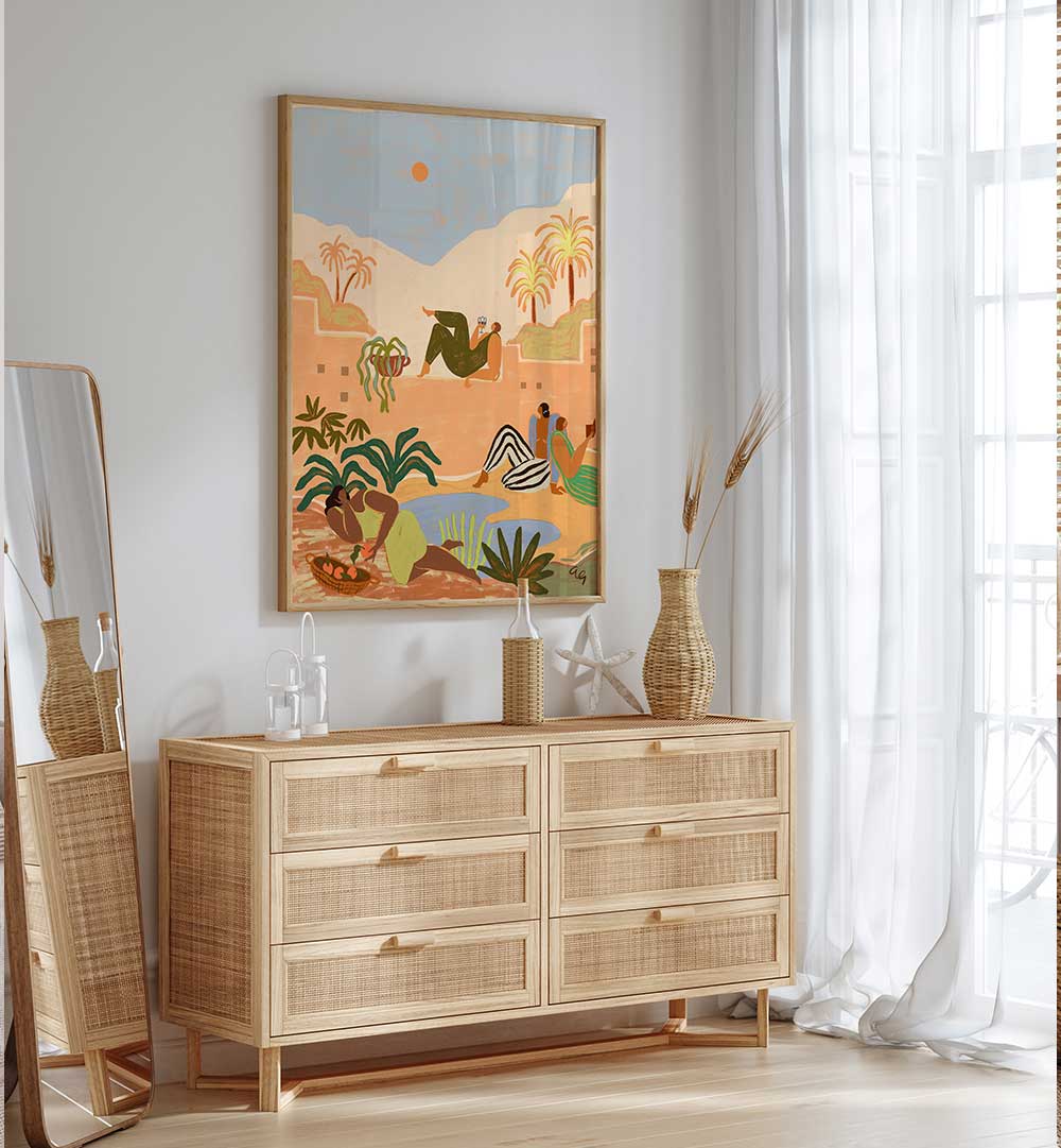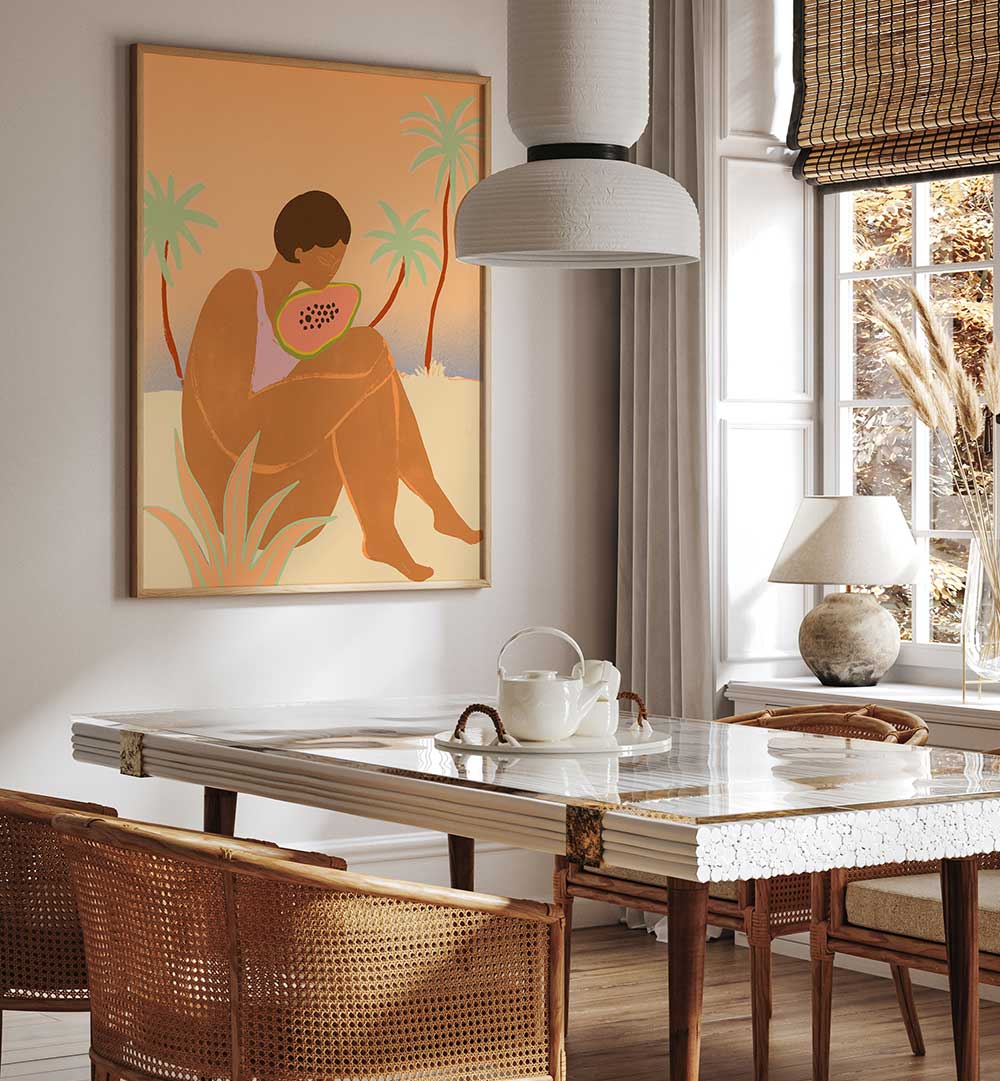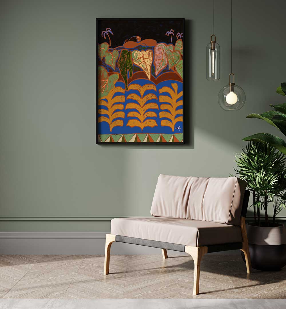 Arty Guava is a Malaysian-born artist whose vibrant works celebrate femininity, nature, and the joy of life. Her signature style blends tropical motifs, bold colors, and dreamy illustrations, inspired by the landscapes and cultural diversity of her home country. Arty’s art explores themes of empowerment, sisterhood, and harmony, often portraying women as powerful, ethereal figures intertwined with nature.