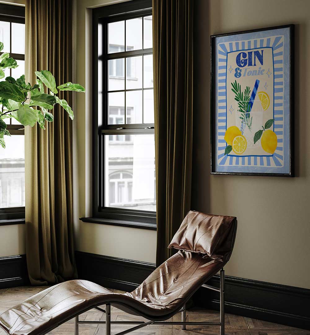 Gin and Tonic V — Bar & Cafe Art is a bold wall statement that captures the spirit of cocktail culture. This vibrant art print brings the glamour of a modern bar into cafes, restaurants, and home lounges, turning any space into a stylish gathering spot.