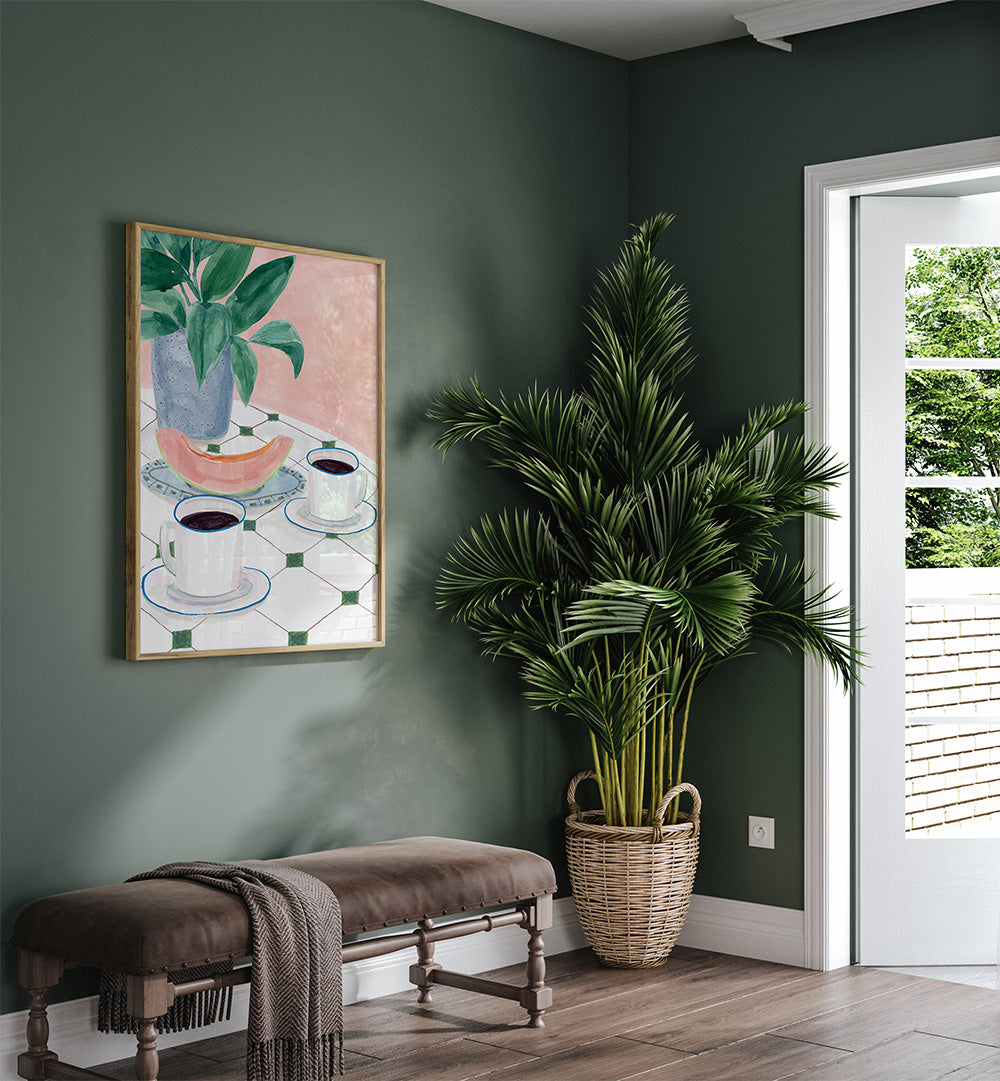 Melon Morning is a refreshing bar and cafe art piece by artist Laura Page, featuring vibrant melon-inspired imagery that evokes fresh mornings and healthy cafe culture with colorful energy.
