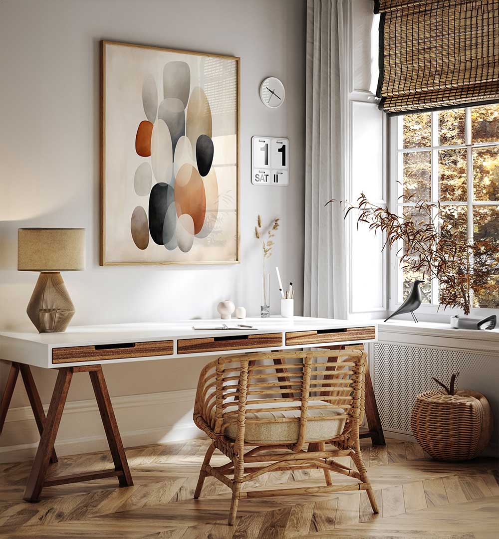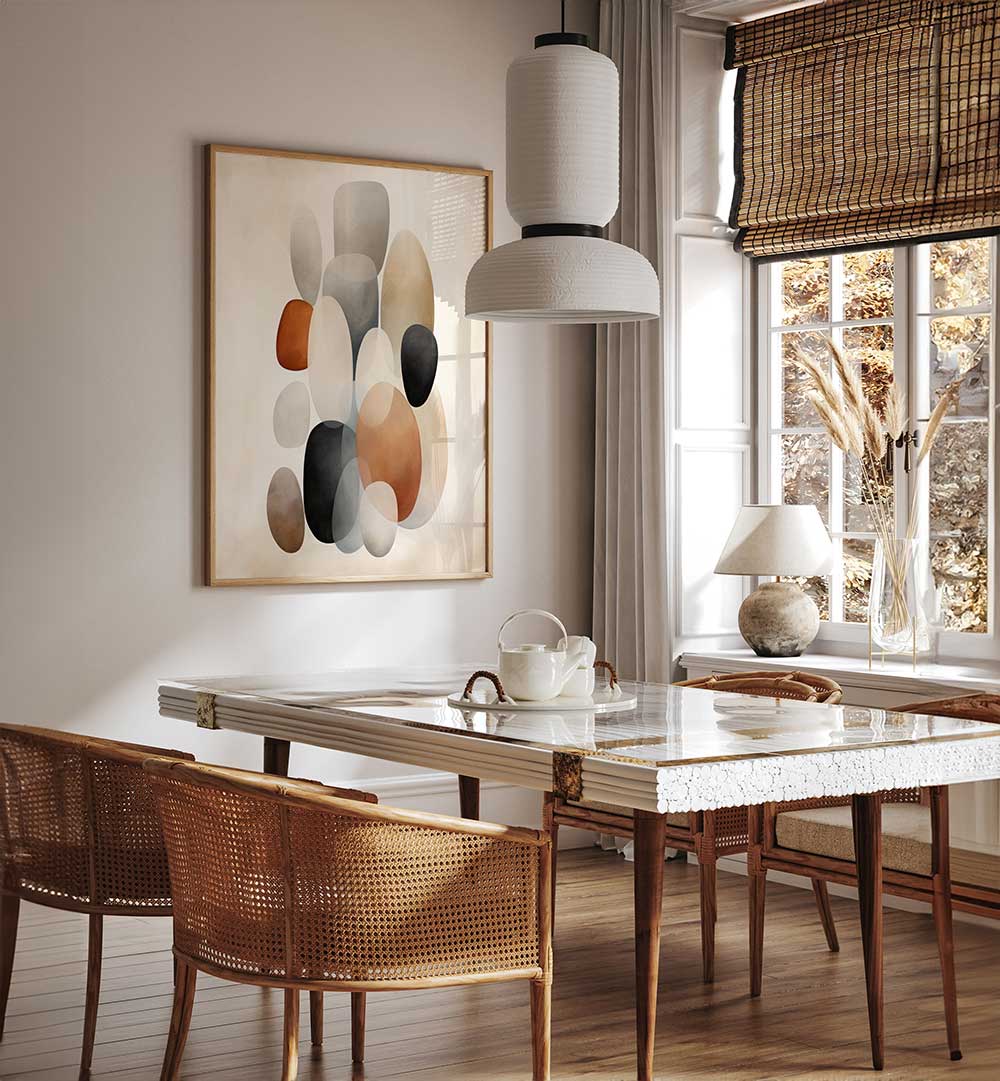 - Interplay of abstract shapes with organic forms for a timeless, versatile aesthetic