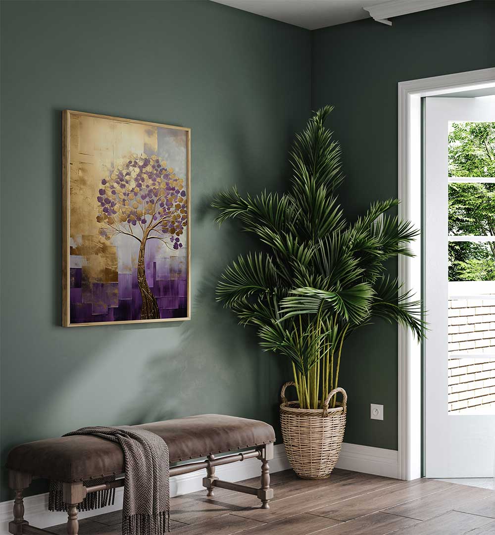 Pair this piece with neutral textiles and metallic accents to heighten the gilded shimmer, or place it against a deep wall to create a dramatic focal point that commands attention.