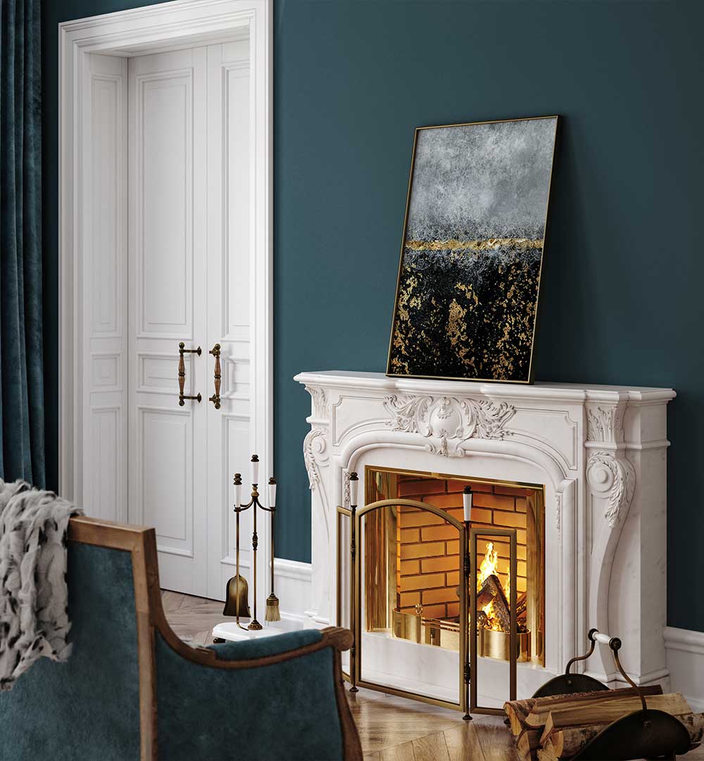 - Bold gold and black palette: High-contrast tones create a luxurious, timeless look that pairs with metal, wood, and glass accents.