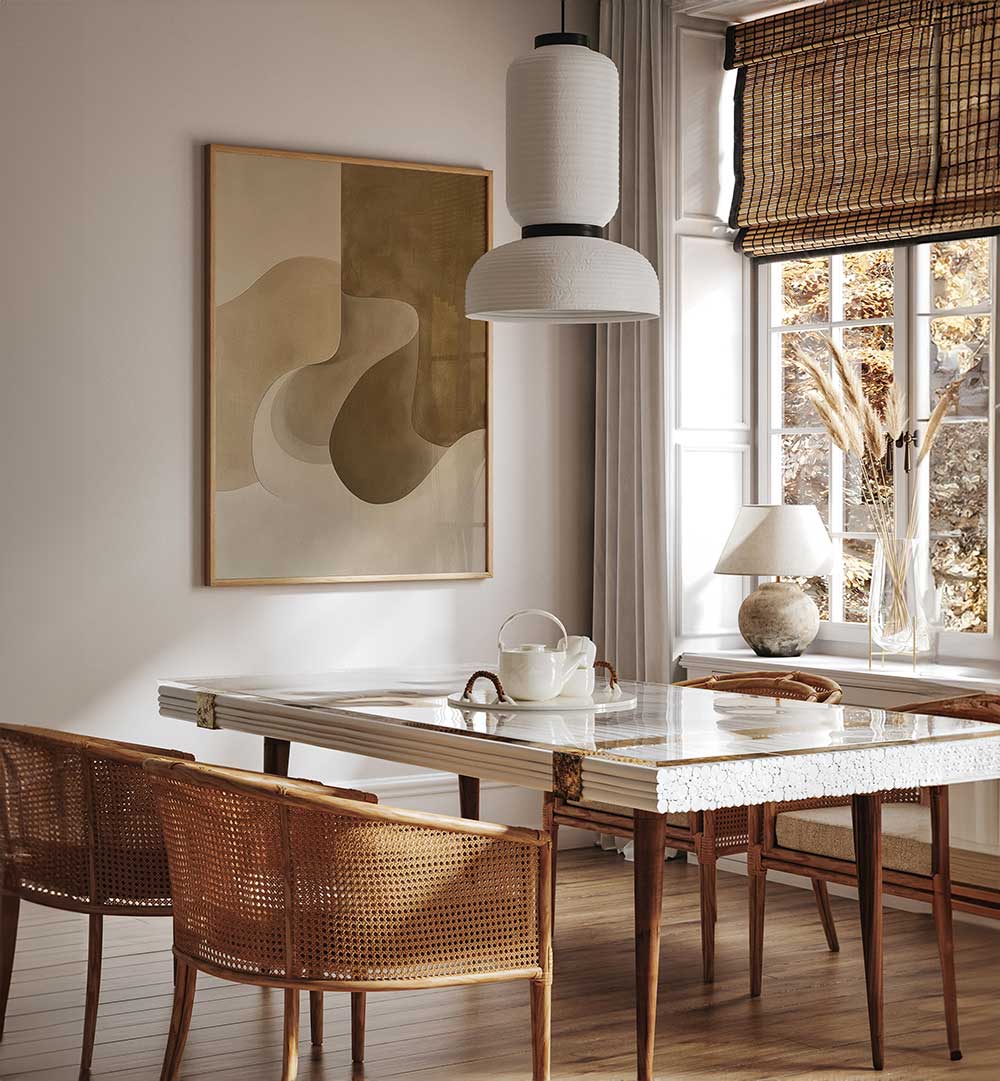 - Beige Abstract ABST XII design offers versatile aesthetics that pair beautifully with minimalist, modern, and transitional interiors.
