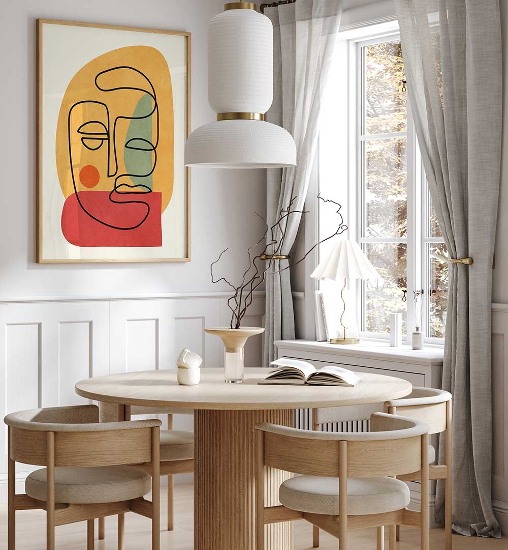 - Modern abstract portrait: Fluid shapes and expressive lines that invite closer inspection.