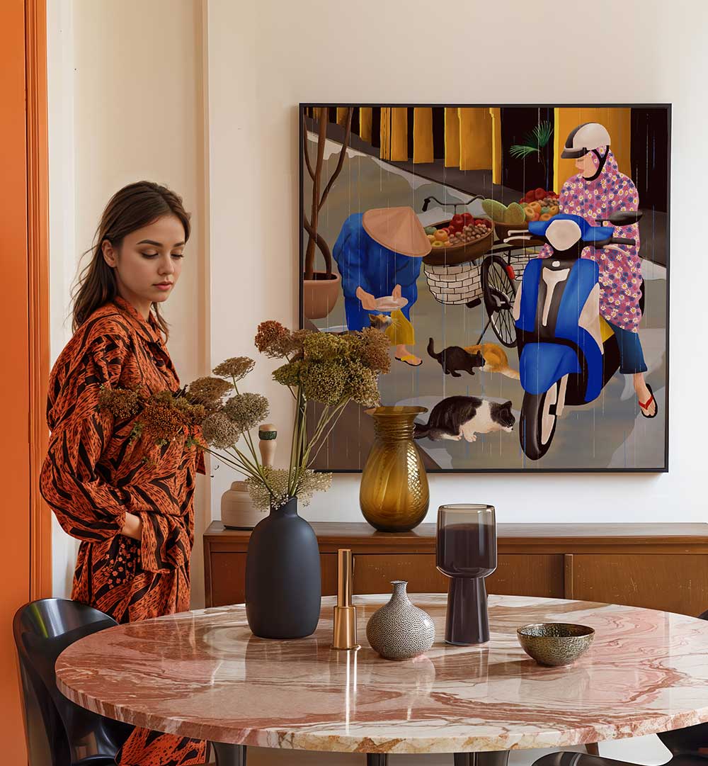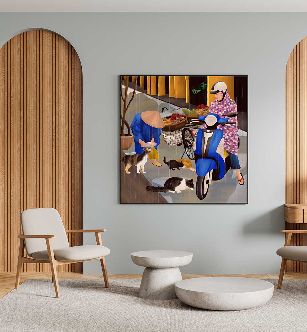Experience a captivating collection titled "Vietnamese Street, Portraits & Figurative Illustrations" that brings Vietnamese daily life to your walls through expressive portraits and compelling street scenes.