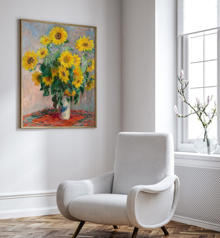 Bring a touch of nature into your living space with this stunning vintage painting. Whether displayed in a living room, dining area, or workspace, the Bouquet of Sunflowers (1881) is sure to spark joy and conversation.
