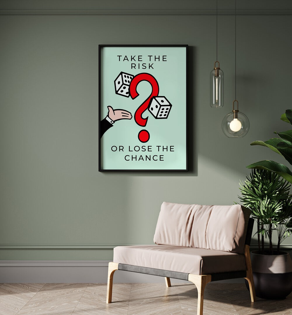 Embrace the excitement of bold decisions and strategic plays with our stunning "Take the Risk" Monopoly Artwork. This captivating piece isn't just decor; it's an invitation to immerse yourself in the world of chance and opportunity.