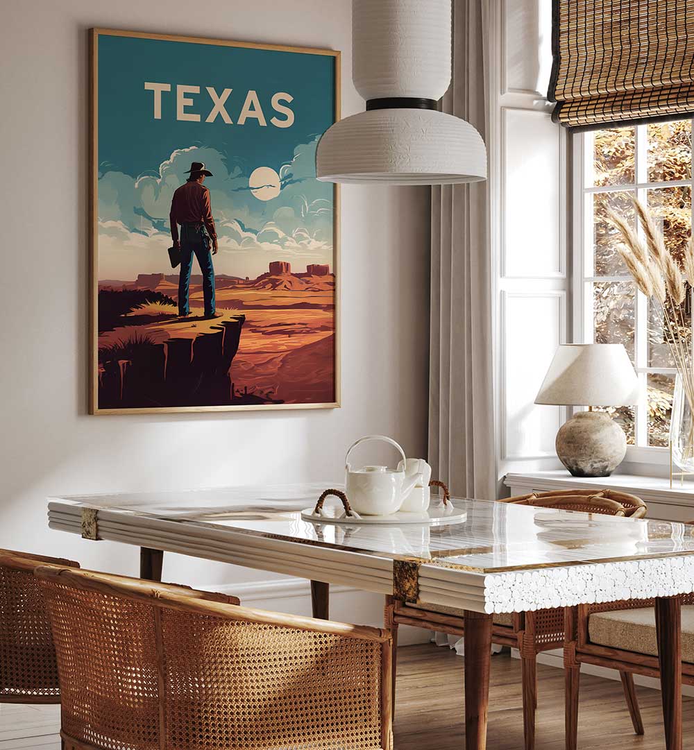 Immerse your space in the rugged charm of the American West with this striking collection that blends Texas pride, cowboy iconography, and modern Americana. Each painting tells a story—from sunlit plains and weathered silhouettes to bold rodeo energy—capturing the enduring spirit of frontier life and contemporary urban-soul fusion.