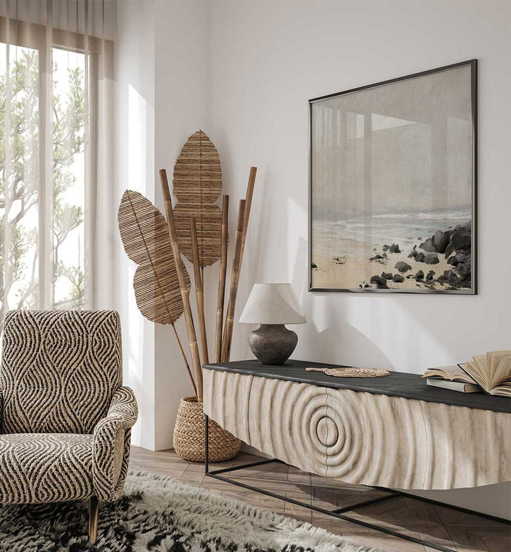 BEACH IV, LANDSCAPE PAINTINGS brings the tranquil beauty of the shoreline into your home. This evocative beach landscape captures the shimmering light on rolling waves, a pale horizon, and windswept sand—an artwork designed to soothe, inspire, and elevate any space.