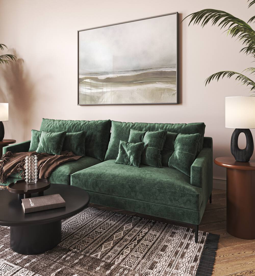Stylish interior featuring SEA AIR, ABSTRACT PAINTINGS, enhancing coastal serenity and artistic expression.