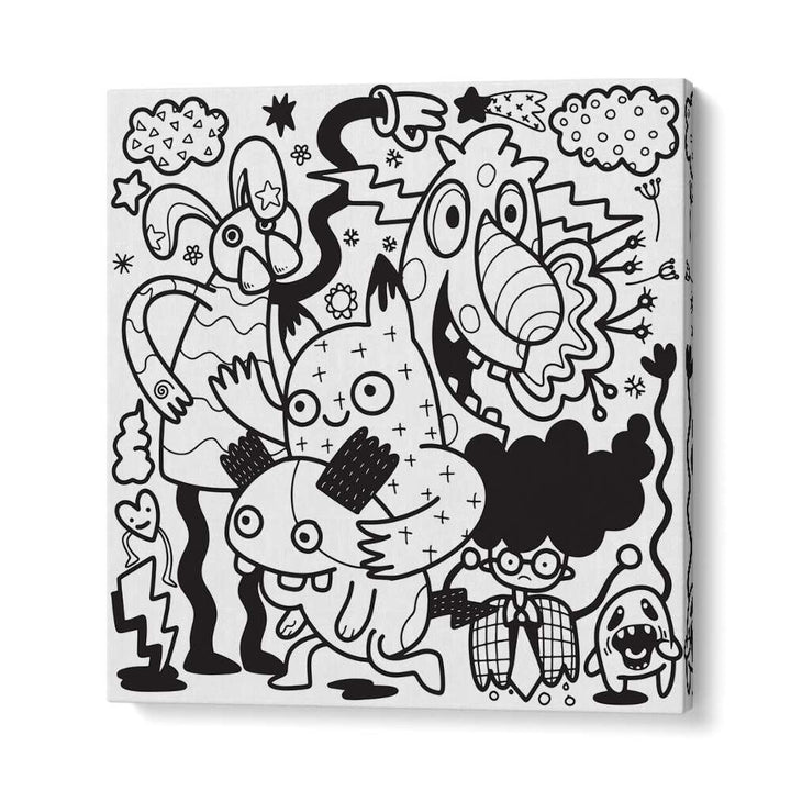 Elevate your artistic expression with the Comic Companions B&W Doodle Art Painting. This unique artistic collection invites you to explore the world of doodles and unleash your imagination like never before.