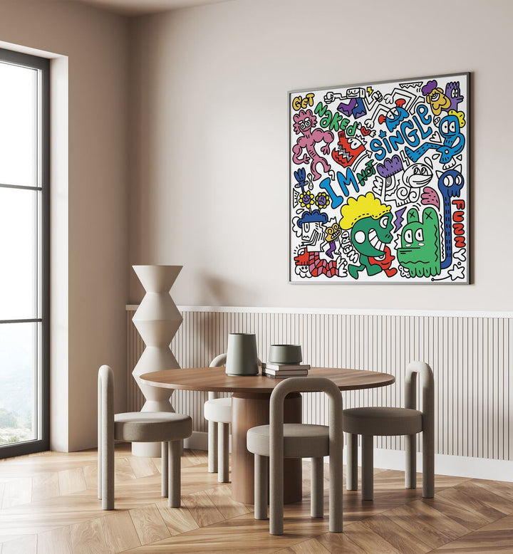 Transform your environment into a gallery of self-expression with this delightful doodle art painting. Whether you're making a bold statement about your relationship status or simply looking to add a splash of fun to your walls, this piece is designed to inspire and entertain.