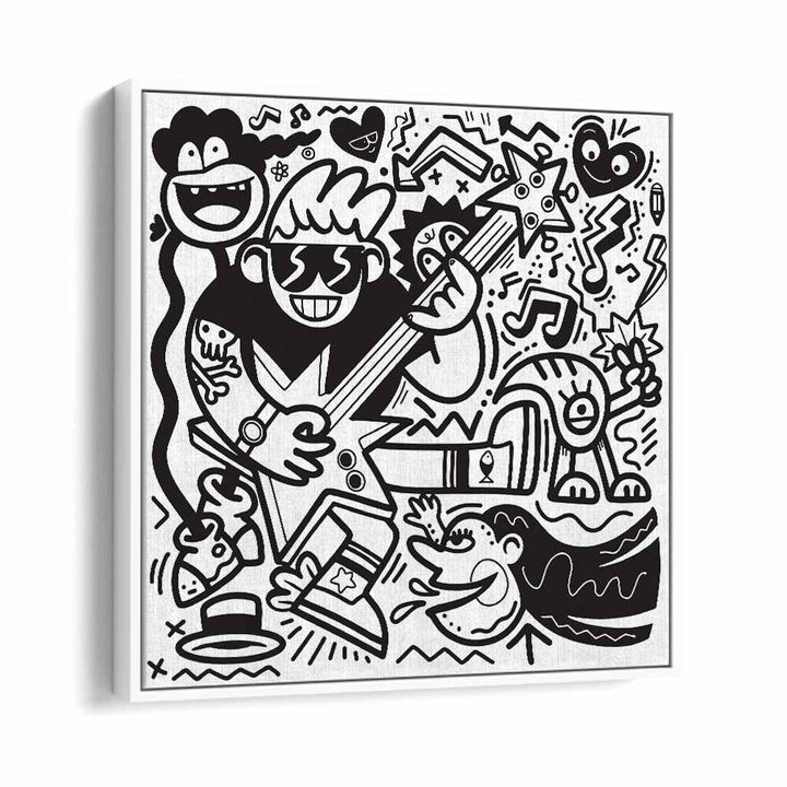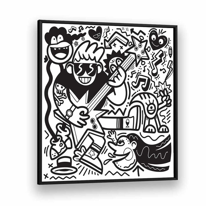 Celebrate the spirit of music and art with "Rockstar Doodle B&W." This artwork is not just a piece of decoration; it's an experience that resonates with everyone who beholds it. Embrace the joy of rock music culture and let your walls tell a story!