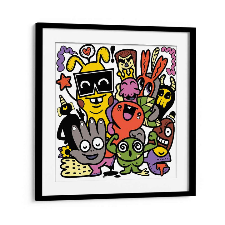 Scribble Snippets Doodle Art Artwork in Black Frame With Mount