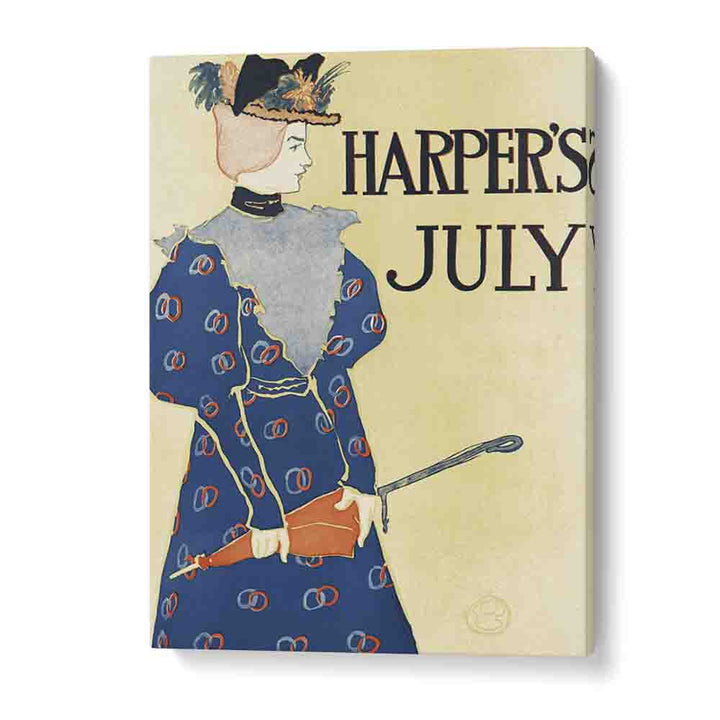 HARPER'S JULY (1896), WOMAN HOLDING AN UMBRELLA ILLUSTRATION , VINTAGE PAINTINGS