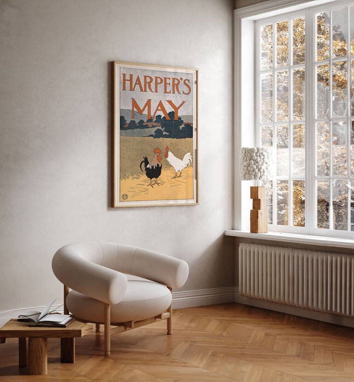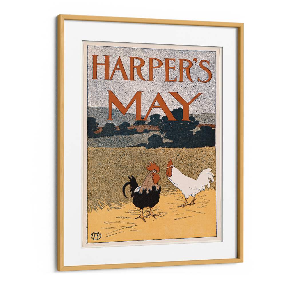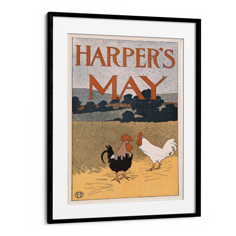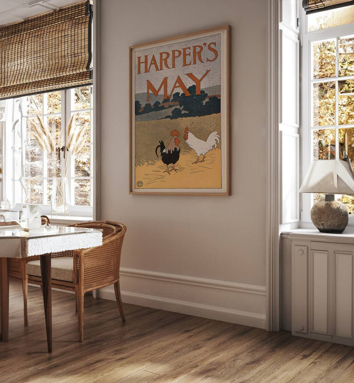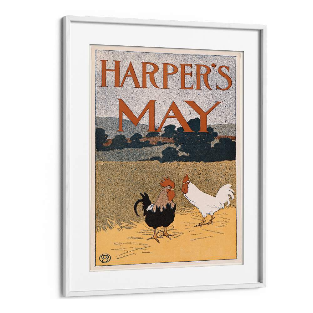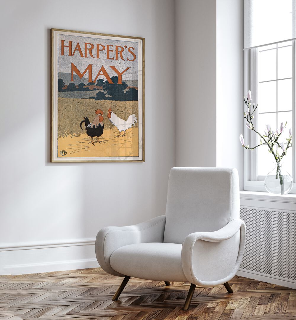 HARPER'S MAY , TWO ROOSTERS IN A FIELD (1898) , VINTAGE PAINTINGS