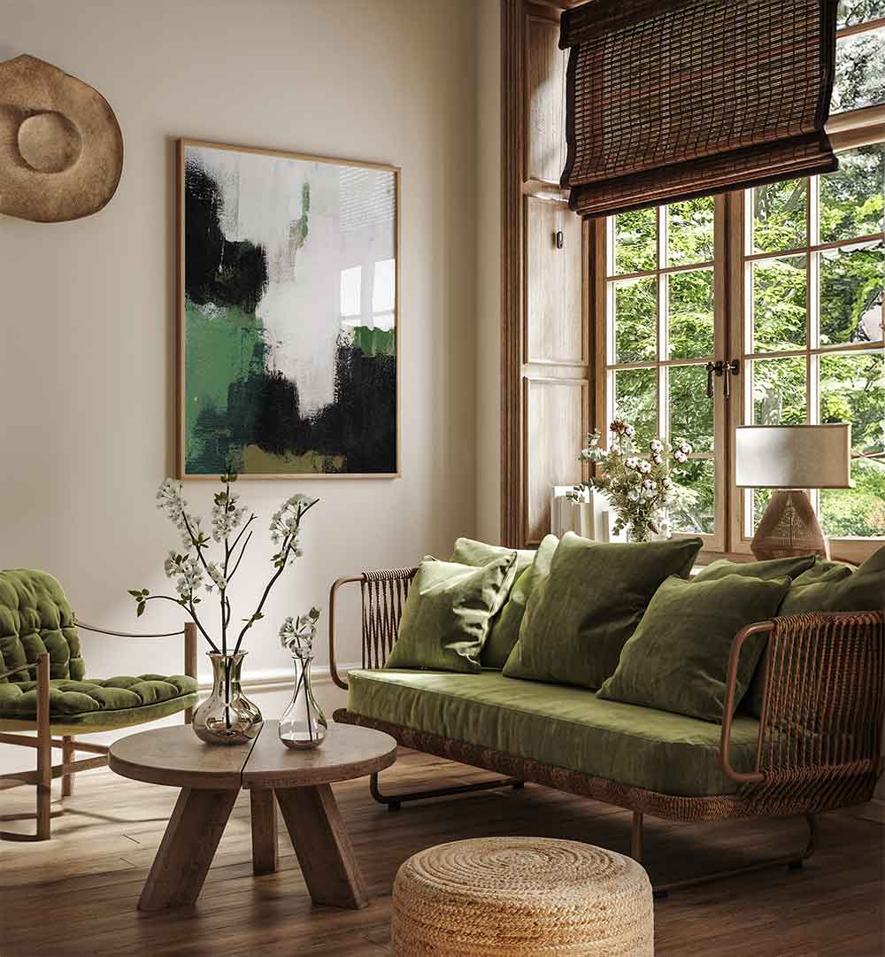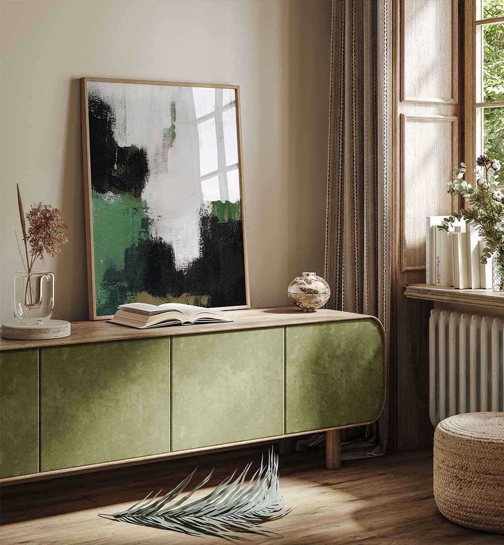 - Statement wall art: A modern abstract painting designed to anchor your design scheme and spark conversation.