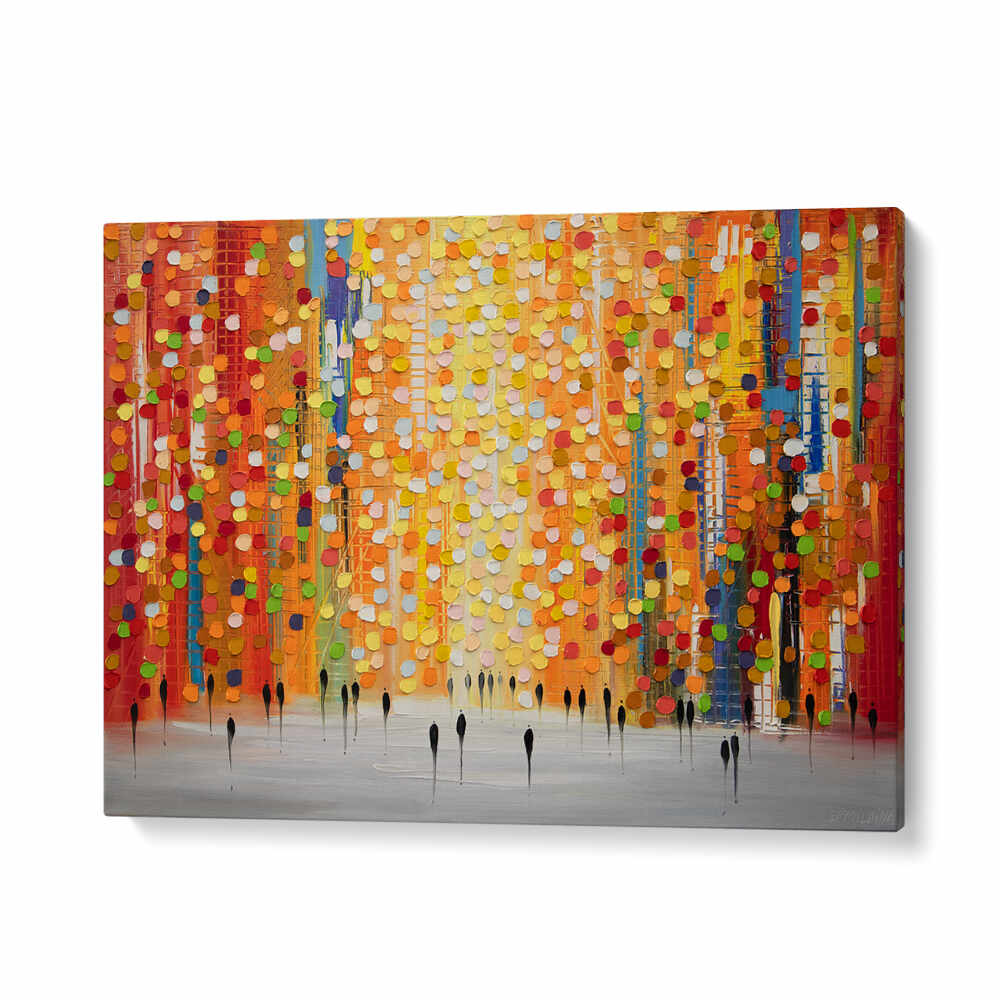Designed for contemporary interiors, the piece balances soft gradients with dynamic strokes, creating a focal point that invites quiet reflection or lively conversation. Its color story—golden ambers, roseate pinks, and cobalt accents—shifts with the light, offering a fresh mood from dawn to dusk.