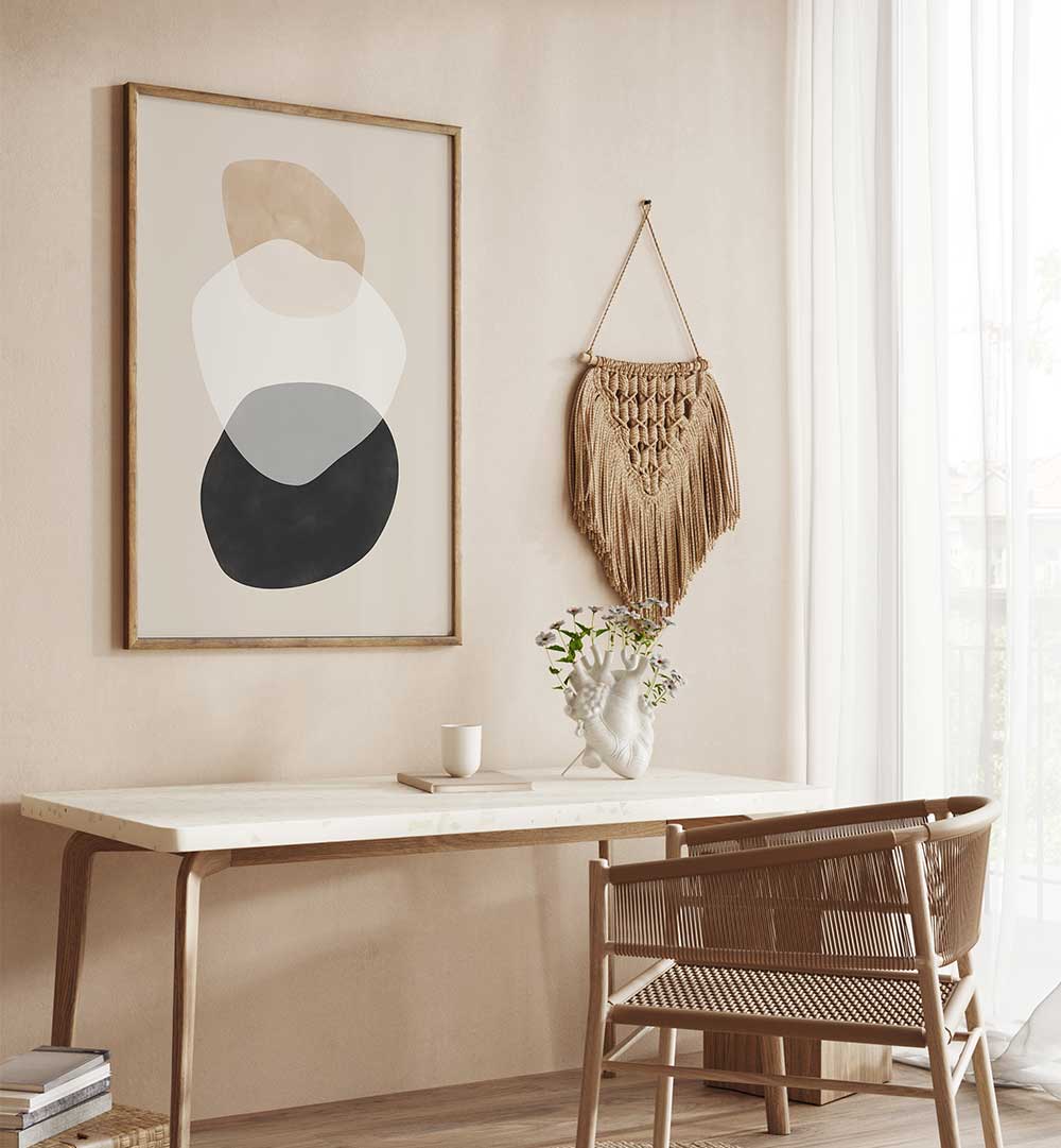 Elevate your home decor with the Beige Boho Shapes Art Paintings. Whether you're embracing the boho aesthetic or simply looking to add a touch of warmth and style, these artworks are the perfect addition to your collection. Bring home the magic of bohemian art today!