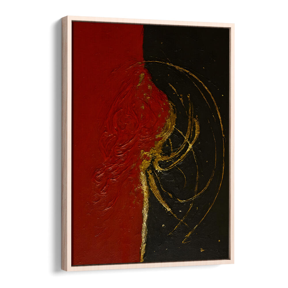 The centerpiece is a dramatic spiral rendered in deep blood-red tones that spirals outward into radiant gold, creating a visceral sense of depth and motion. The expressive brushwork and rich contrasts invite the viewer to linger, exploring texture and depth as if the painting were alive with pulse and drama.