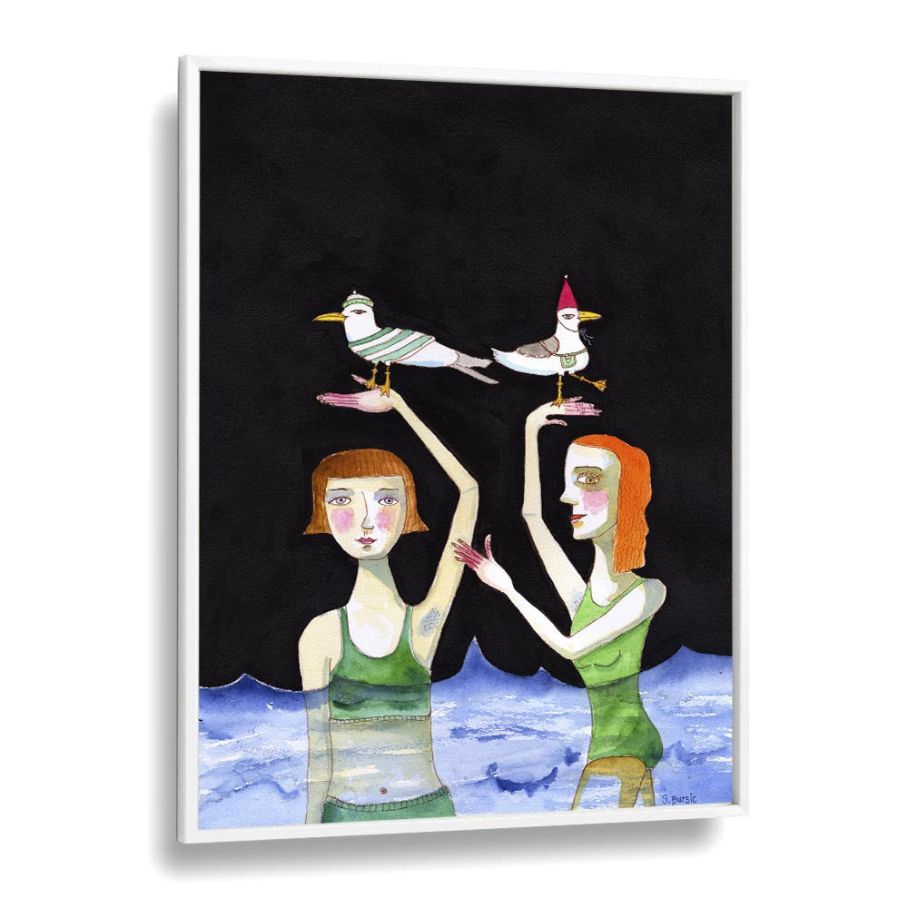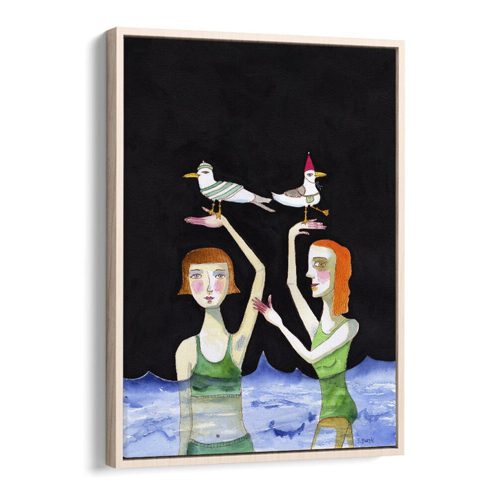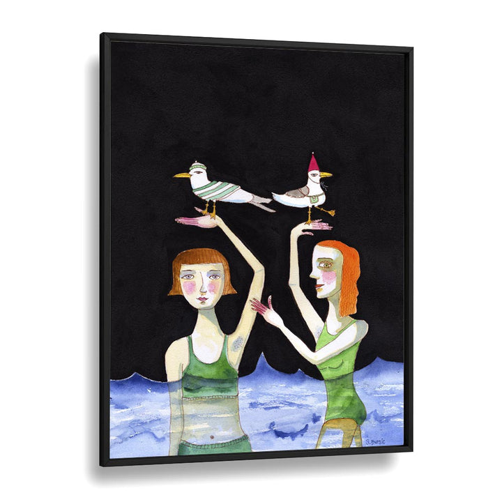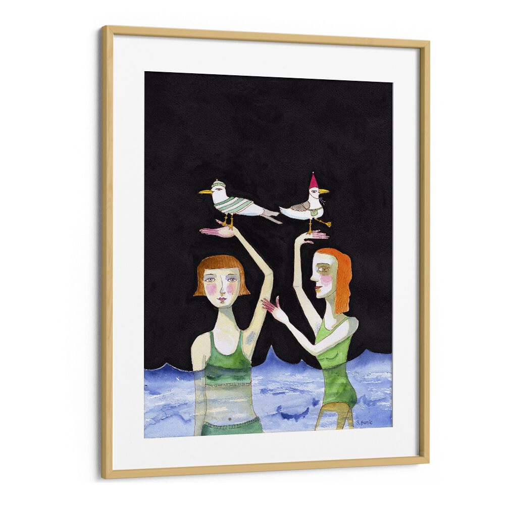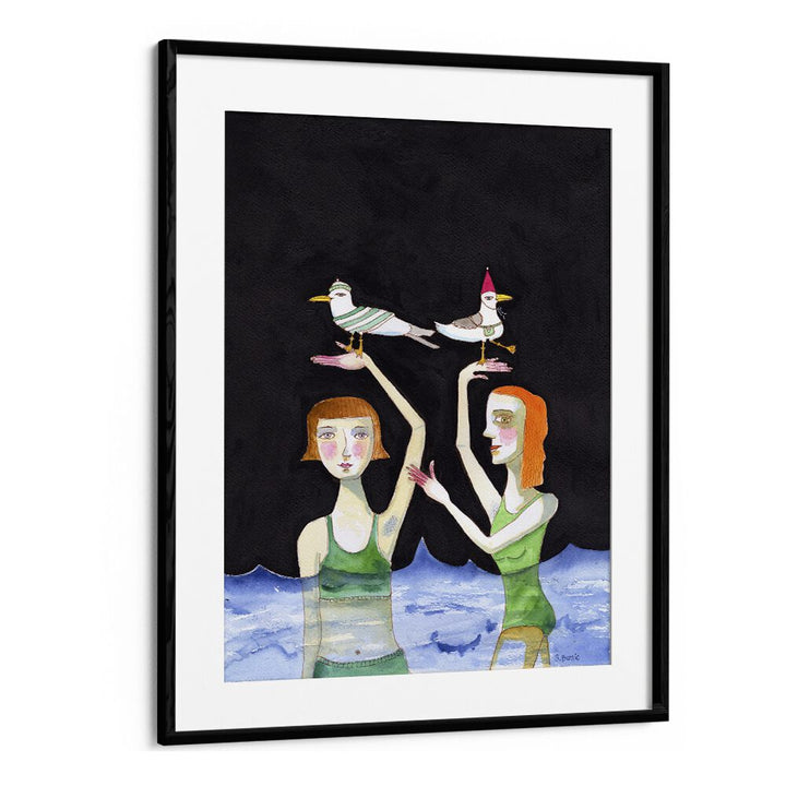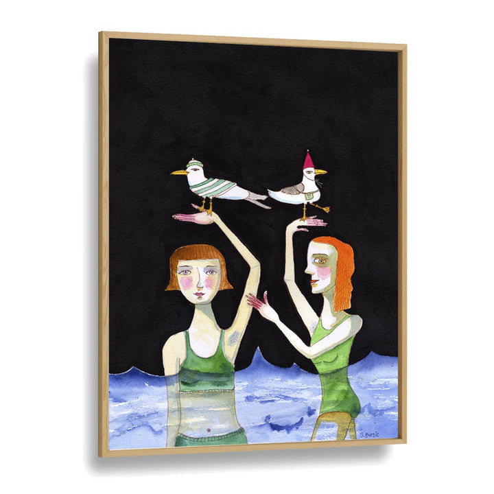 BEST FRIENDS SWIMMING WITH BIRDS , PORTRAITS & FIGURATIVE ILLUSTRATIONS