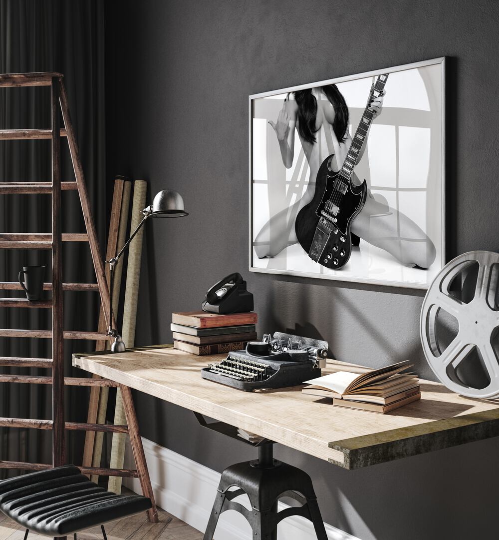 Transform your surroundings with the captivating artistry of "Go Rock Yourself", a unique collaboration by renowned artist David Drake. This fine art photography piece seamlessly blends fashion and creativity, making it a perfect addition to any modern decor.