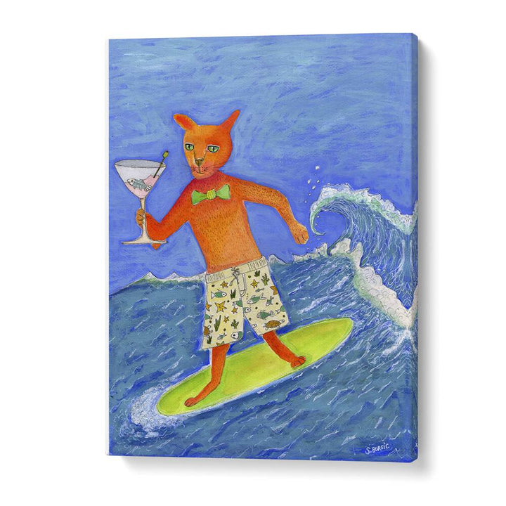 Dive into the delightful world of art with the Surfing Cocktail Cat by Sharyn Bursic. This captivating piece is more than just a decoration; it's an experience, now available on premium museum-grade canvas and fine art media.