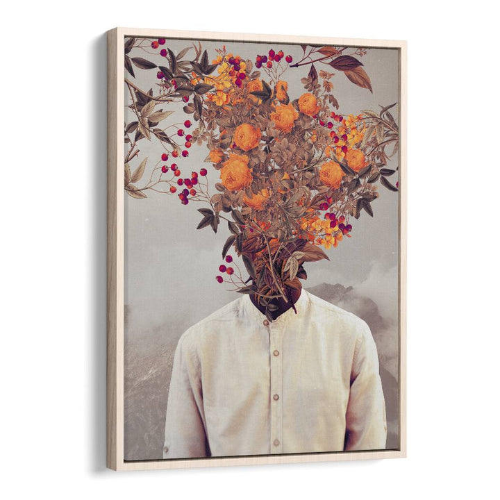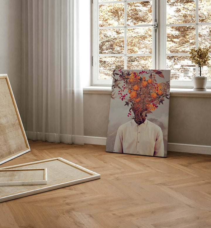 Bright Bloom, Surreal Art Prints by Frank Moth features vibrant flowers in a unique head composition, perfect for decor.