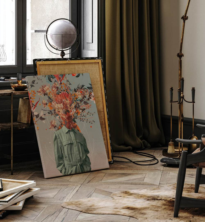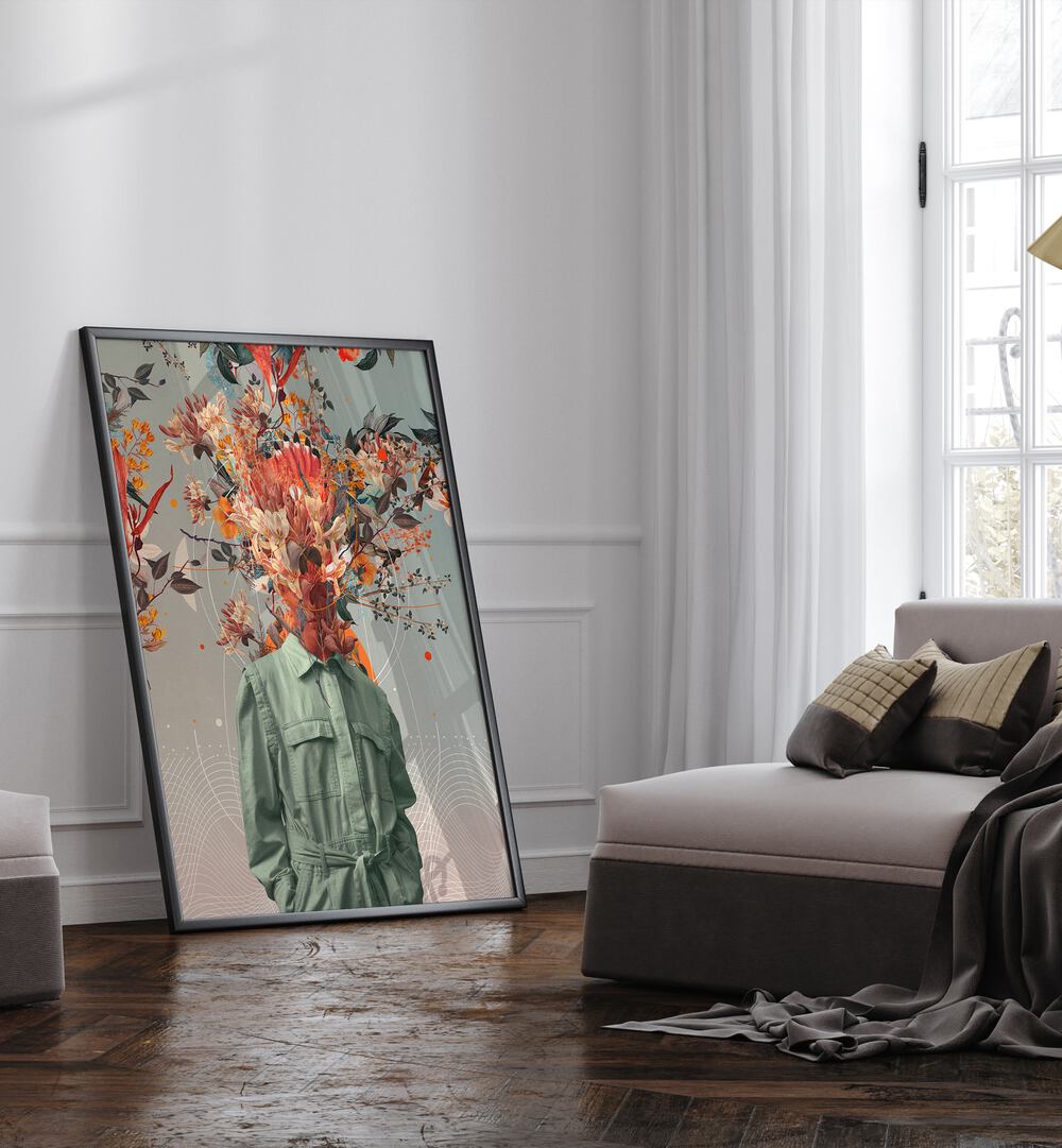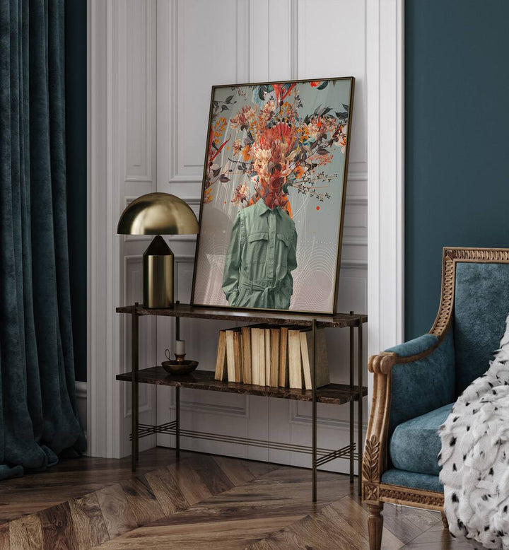 Captivating YOU SMELL LIKE HOME, SURREAL ART PRINTS by Frank Moth, showcasing vibrant floral surrealism in a cozy setting.