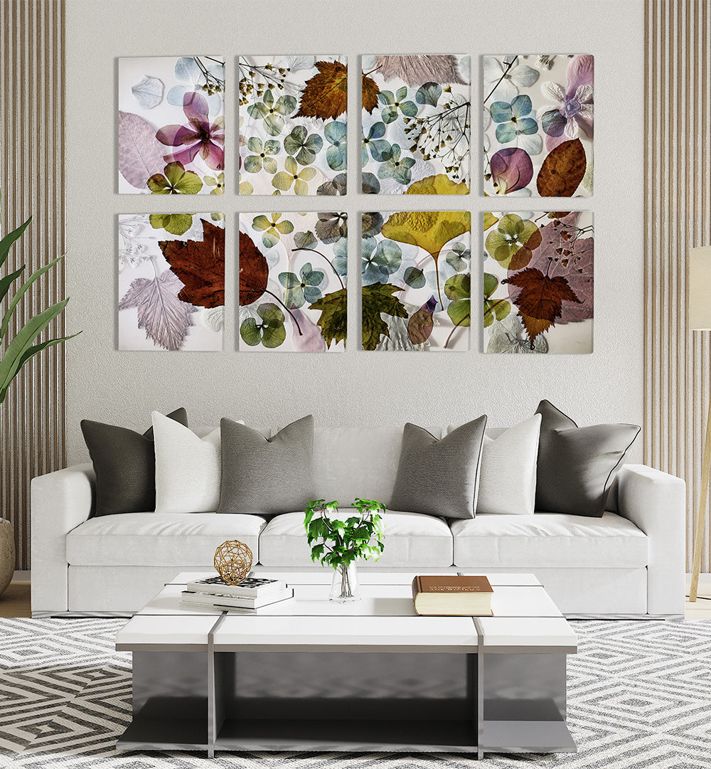 Measuring approximately 63″ width × 45″ height, this gallery wall set is available on premium canvas and can be selected with either Rolled Art or Gallery Wrap presentation options — letting you tailor the look to your décor style. Whether hung in living rooms, bedrooms, home offices, hallways, or creative spaces, Autumn Whisper II brings refined balance, muted autumnal mood, and serene visual flow to contemporary interiors.