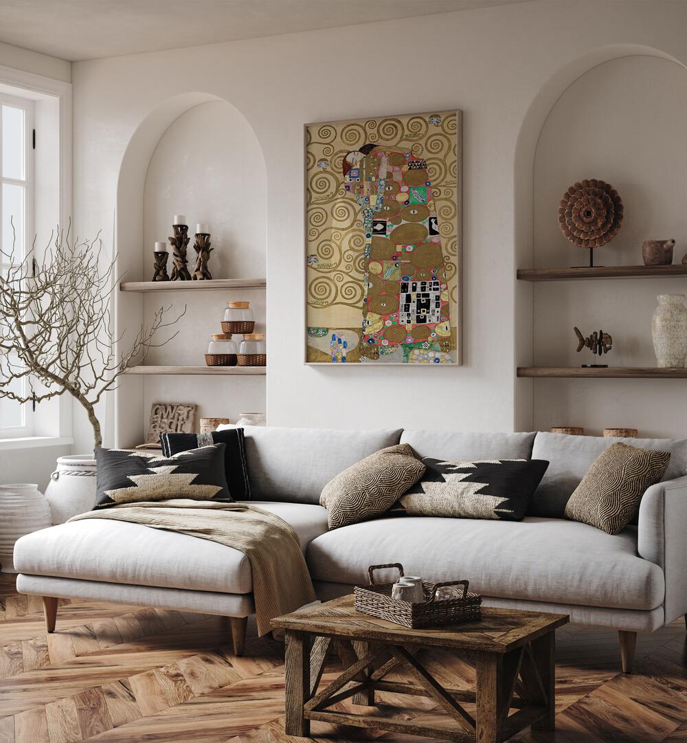 Choose "FULFILLMENT (1910–1911)" by Gustav Klimt for a sophisticated addition to your home or office that seamlessly blends artistic elegance with modern style.