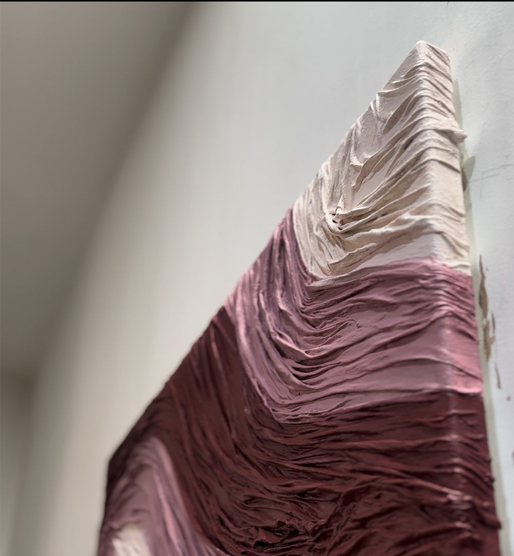 It's a textured artwork made with fabric. A minimalistic piece that acts as a statement piece providing a sense of contemporary style.