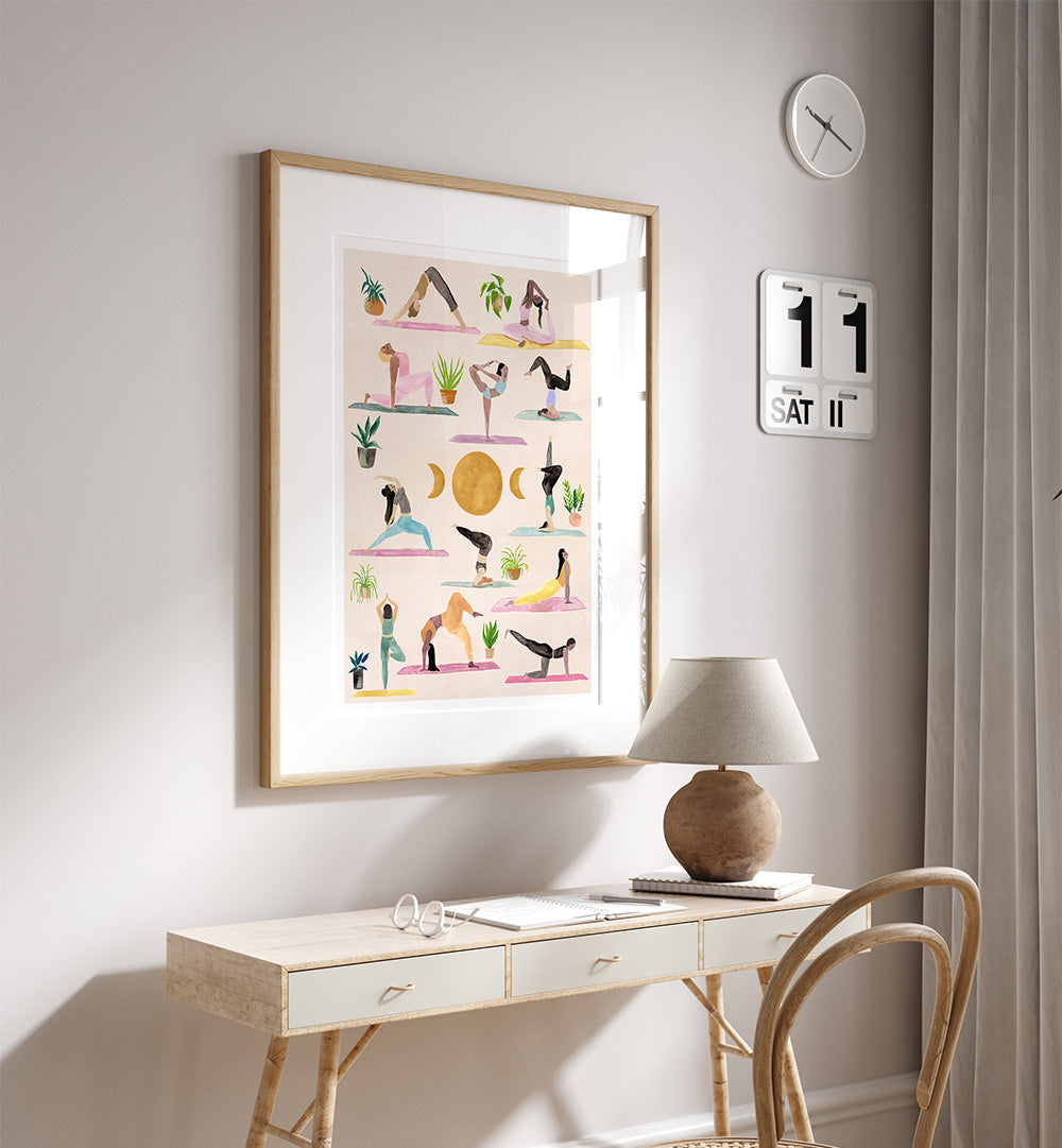 Yoga Poster is an inspiring health and wellness poster by artist Laura Page, featuring serene yoga poses and calming aesthetics that promote mindfulness, balance, and inner peace.