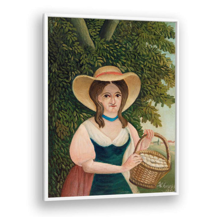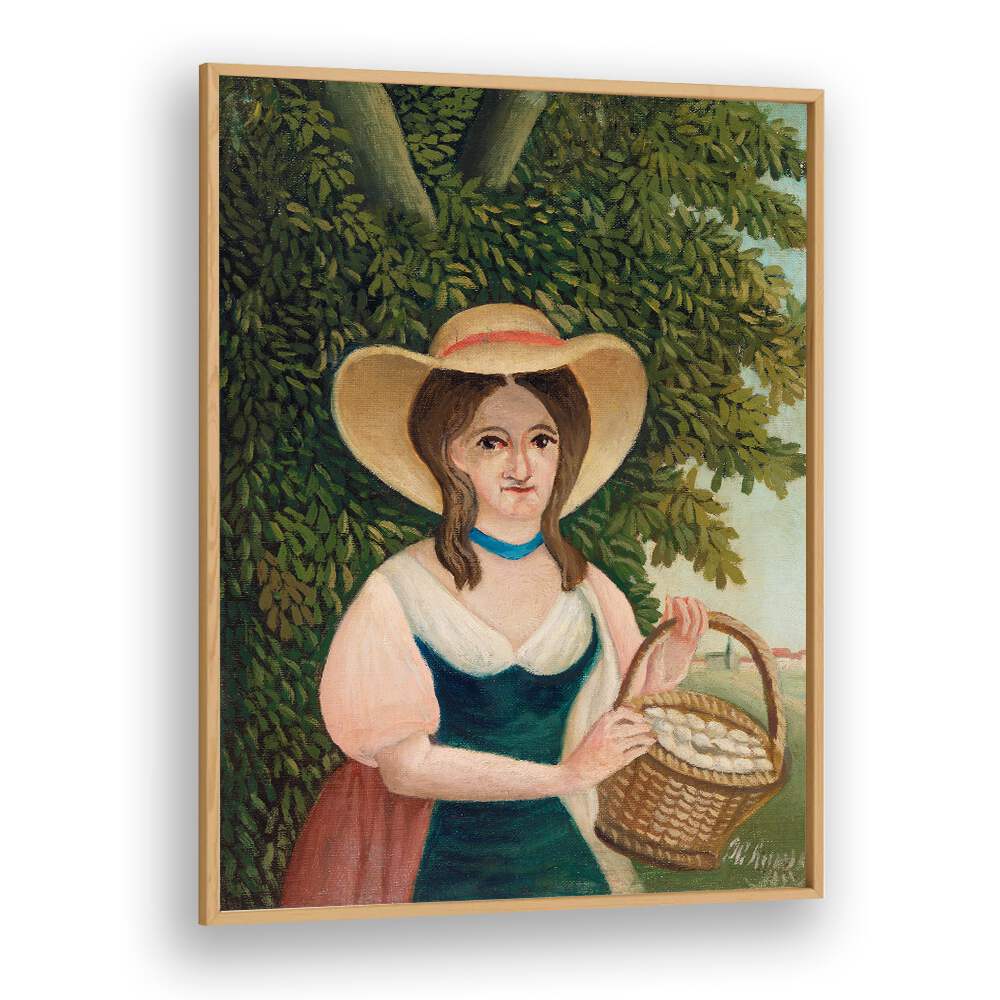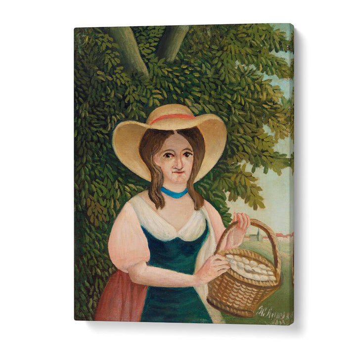 Immerse yourself in the enchanting world of Henri Rousseau with our premium reproduction of the iconic painting WOMAN WITH BASKET OF EGGS (1905–1910). This vintage artwork is now available on museum-grade canvas and fine art media, designed to elevate your space with its timeless beauty.