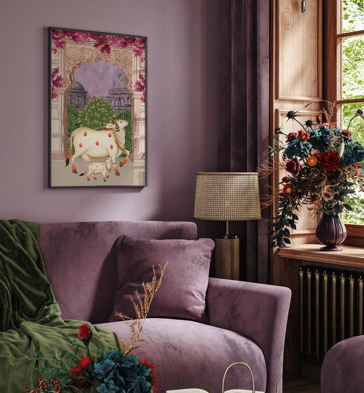 Explore COW MOTHER AND CALF'S AFFECTION II, INDIAN ART PAINTINGS, showcasing the tender bond between mother and calf.