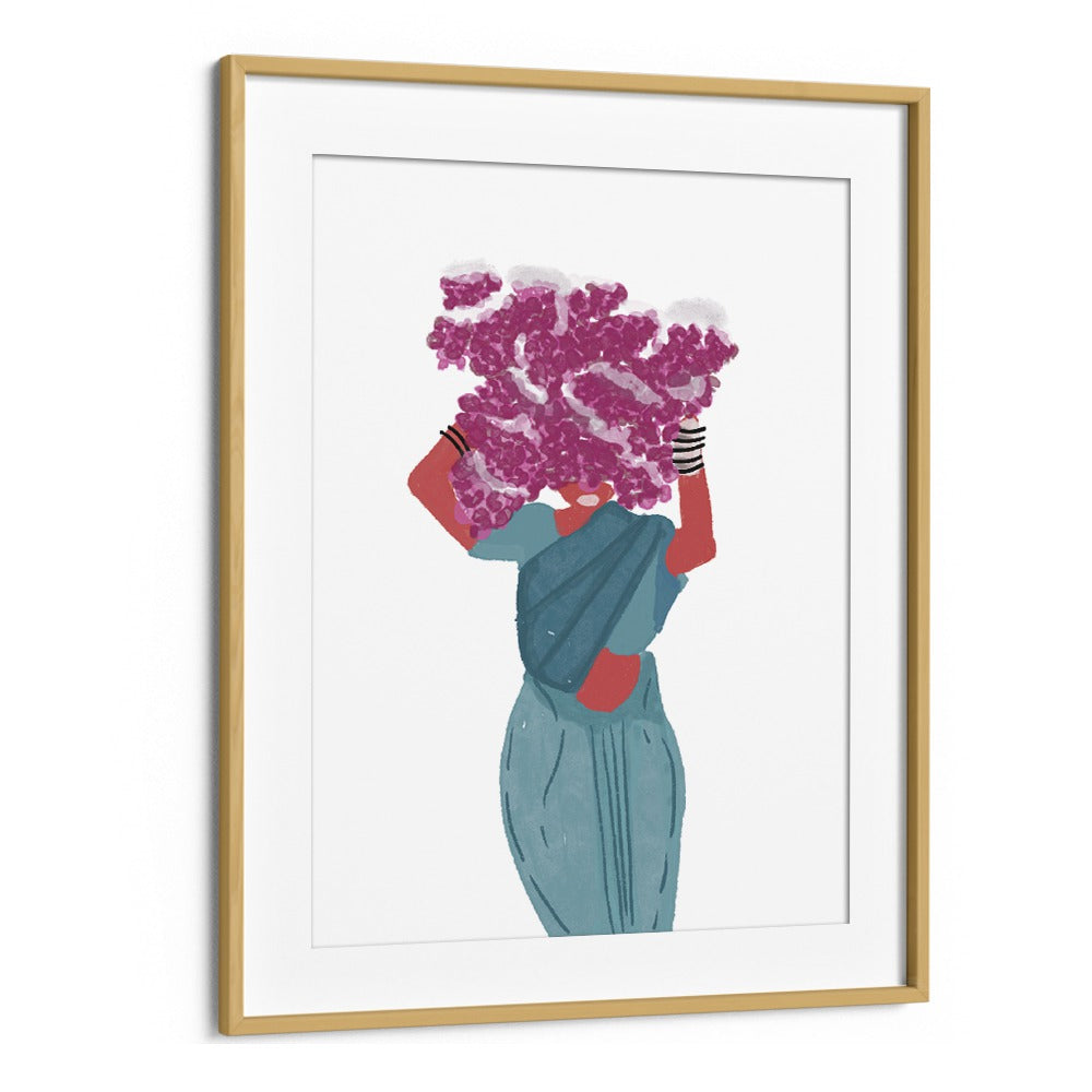 Phoolwalis Of India II By Shreya Roy Chowdary, Indian Art Paintings Artwork in Oak Wood Plain Frame