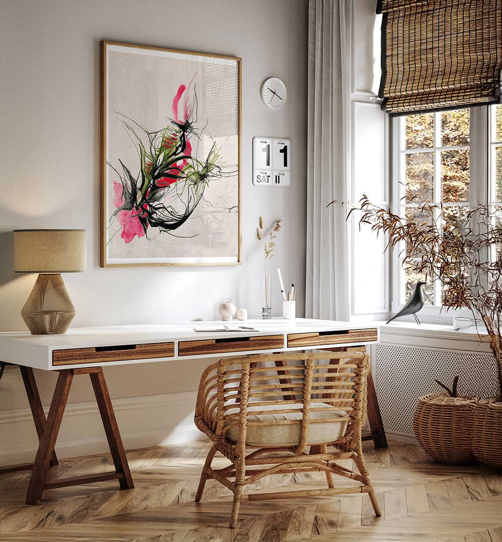 Jenja Braun is an Osnabrück- Germany based illustrator and mixed media artist known for her bold and subtle fine art prints and bright colorful collage arts. Passionate about examining natural forms and inspired by the inexhaustible diversity of nature she creates modern floral and botanical scenes.