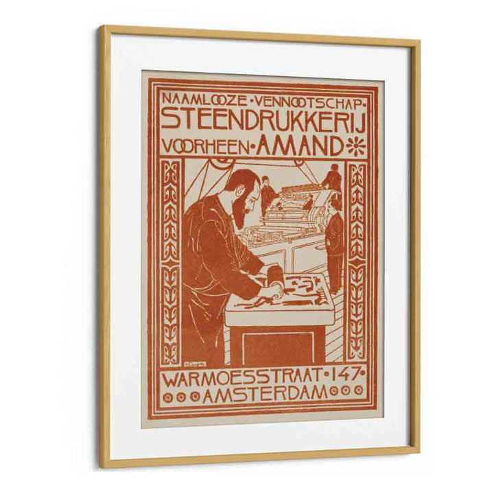 Introducing the ADVERTENTIE VAN STEENDRUKKERIJ VOORHEEN AMAND (1880–1928) by Johann George van Caspel, now available in our exclusive collection of premium art prints and canvas options. This masterpiece is an exceptional addition to any art lover's collection.