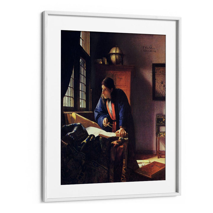 Step into the world of classical art with The Geographer, a stunning vintage painting by the renowned Dutch artist Johannes Vermeer. Created in 1669, this work encapsulates the essence of enlightenment and exploration, making it a perfect addition to any art collection.