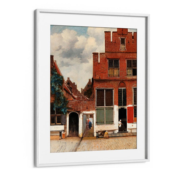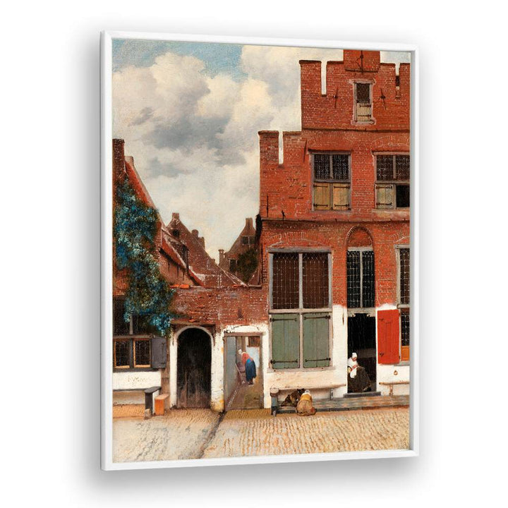 Step into the enchanting world of 17th-century Dutch art with this exquisite vintage painting, "The Little Street" by the renowned artist Johannes Vermeer. This masterpiece offers a captivating glimpse into everyday life during a time of great artistic innovation.