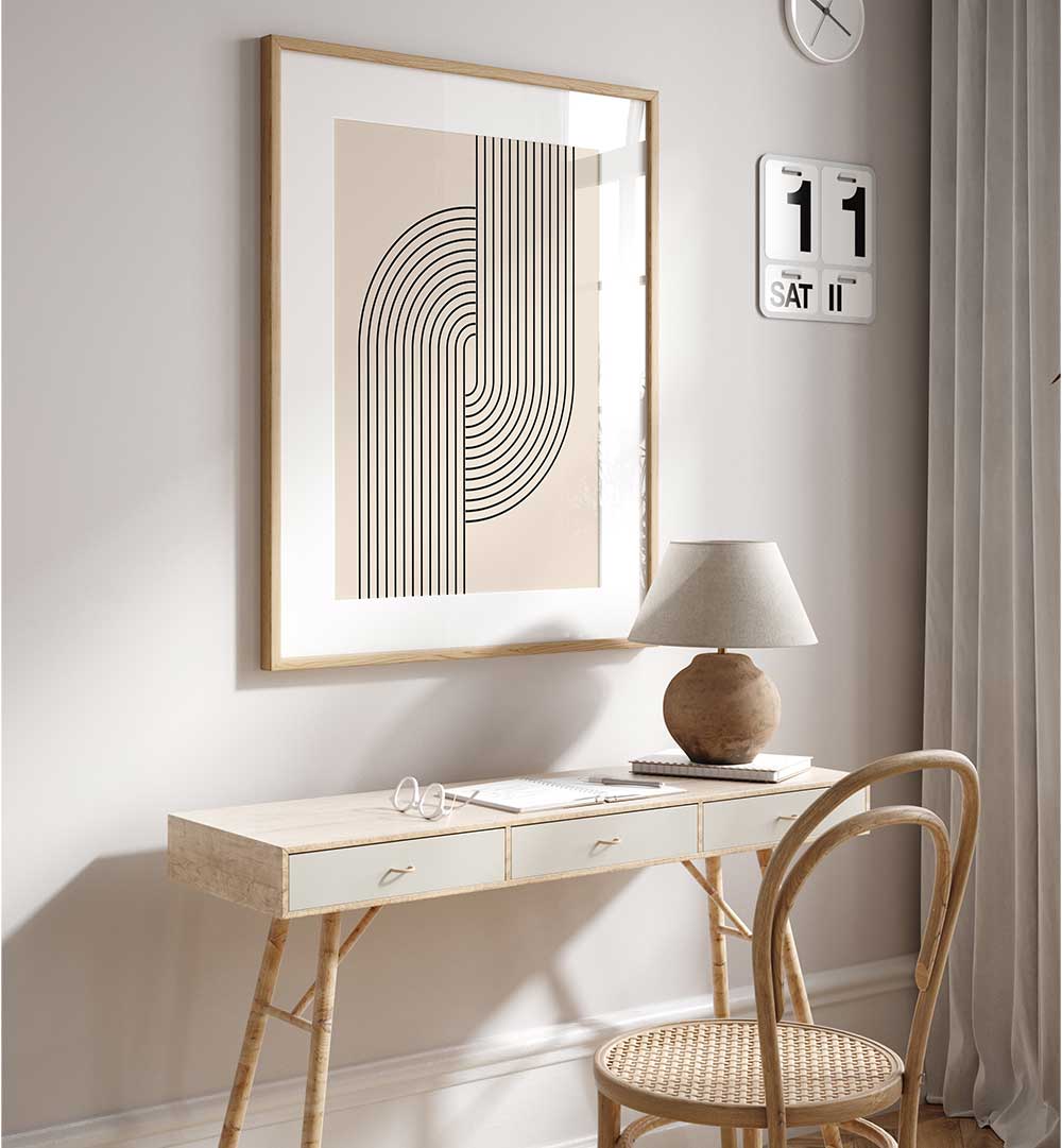 Introducing BAUHAUS BOHO BLACK V, a visually arresting art painting that fuses the precision of Bauhaus design with the free-spirited warmth of Boho aesthetics. The bold black V motif serves as a strong focal point, turning flat wall space into a conversation starter and a beacon of contemporary style.