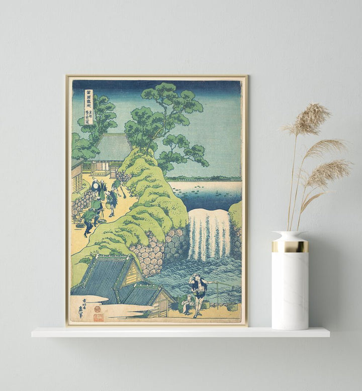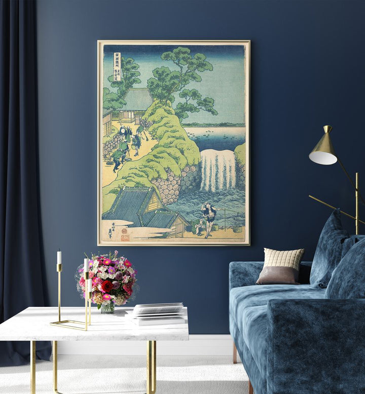 Immerse yourself in the exquisite artistry of Aoigaoka Falls in the Eastern Capital by the renowned Japanese artist, Katsushika Hokusai. This stunning painting captures the tranquil elegance of nature, showcasing Hokusai's mastery in blending vibrant landscapes with serene water features.